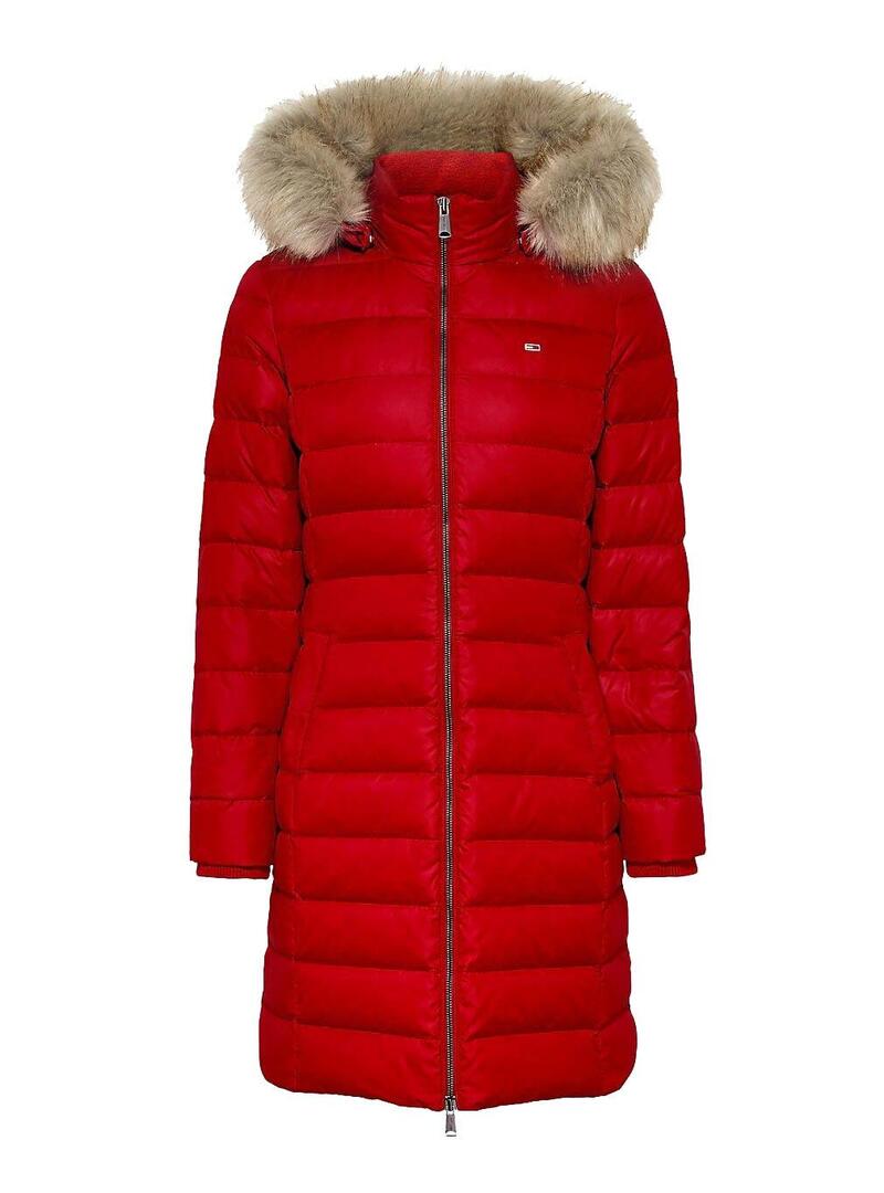 Casaco Tommy Hilfiger. Modelo Hooded Down. Cor vermelha. Fecho com zíper. Tecido acolchoado com Plumas. Corte longo. Capuz removível com pele sintético. Logótipo bordado no peito. Dois bolsos laterais. Regular fit