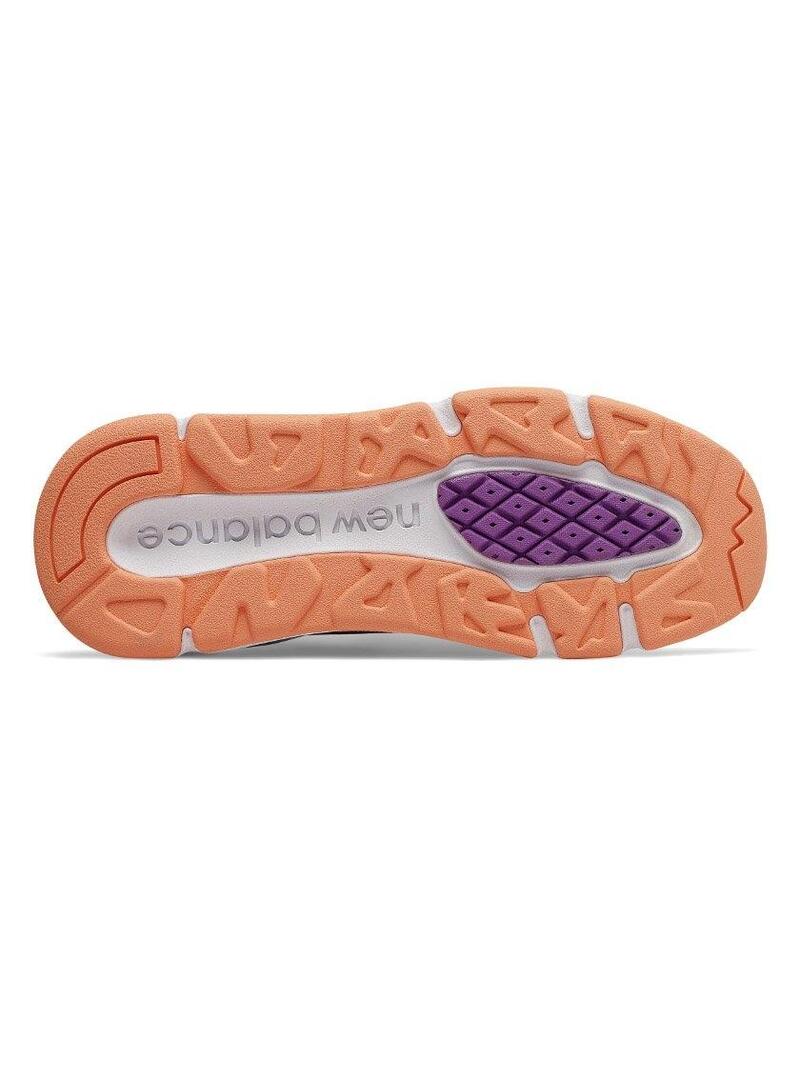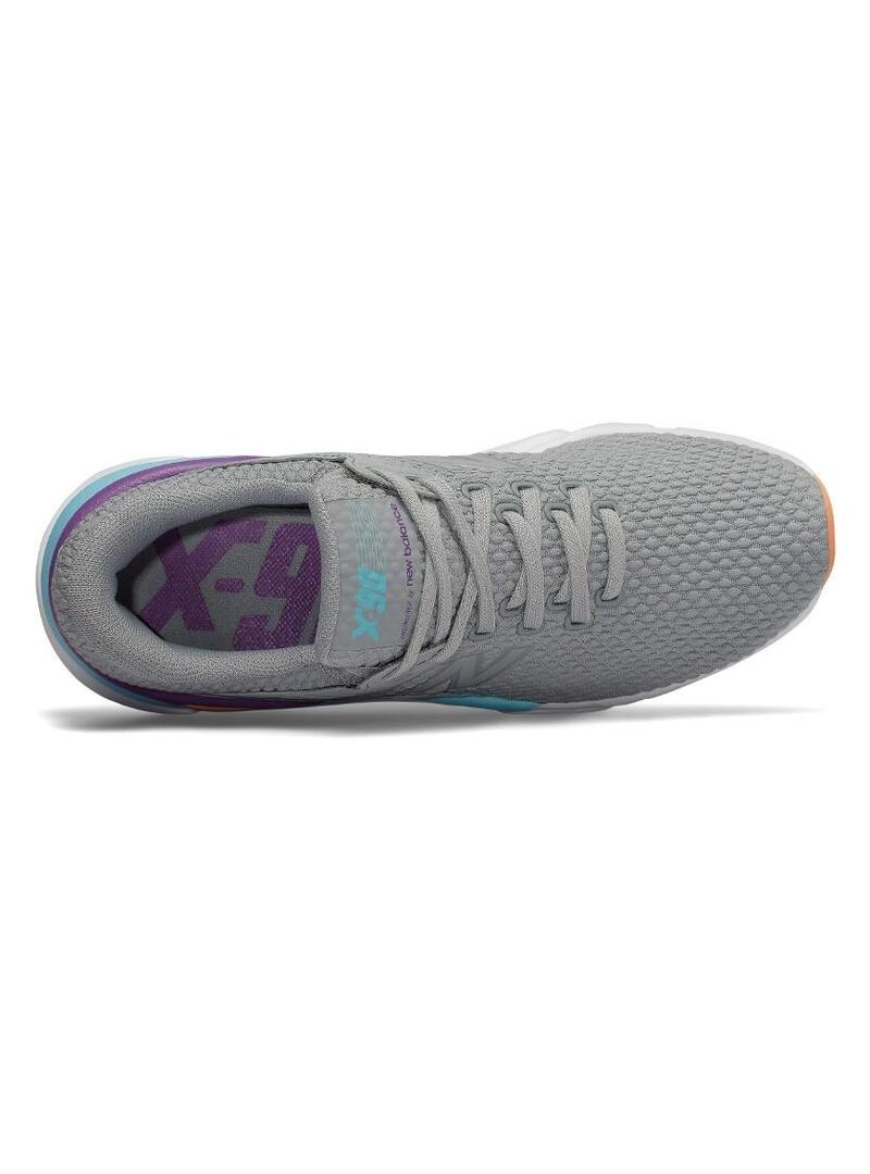 Sapatilhas New Balance. Modelo X90. Cor cinzenta. Entressola em várias cores. Parte superior do tecido sintético. Logo da marca ao lado. Sola multicolor.