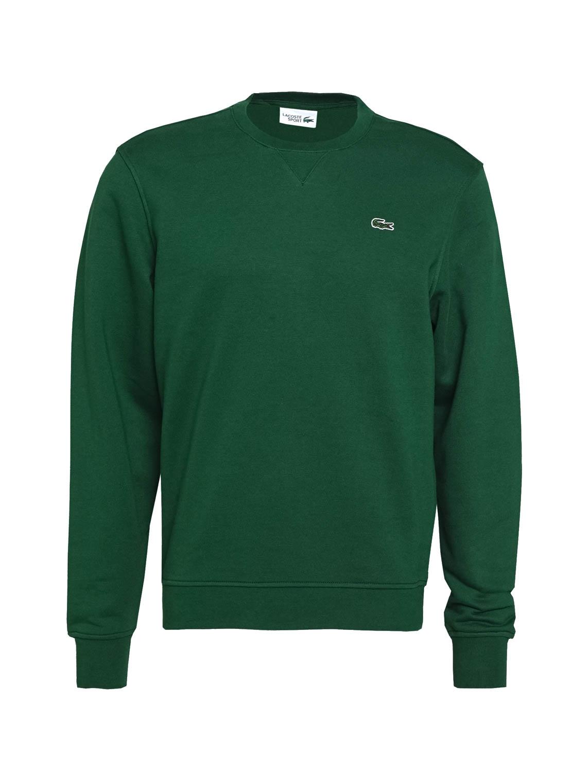 Sweat Lacoste. Cor verde. Logótipo gravado no peito. Pescoço redondo. Regular fit. Estriado nas extremidades.