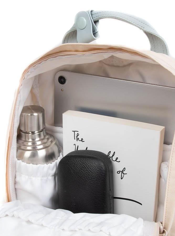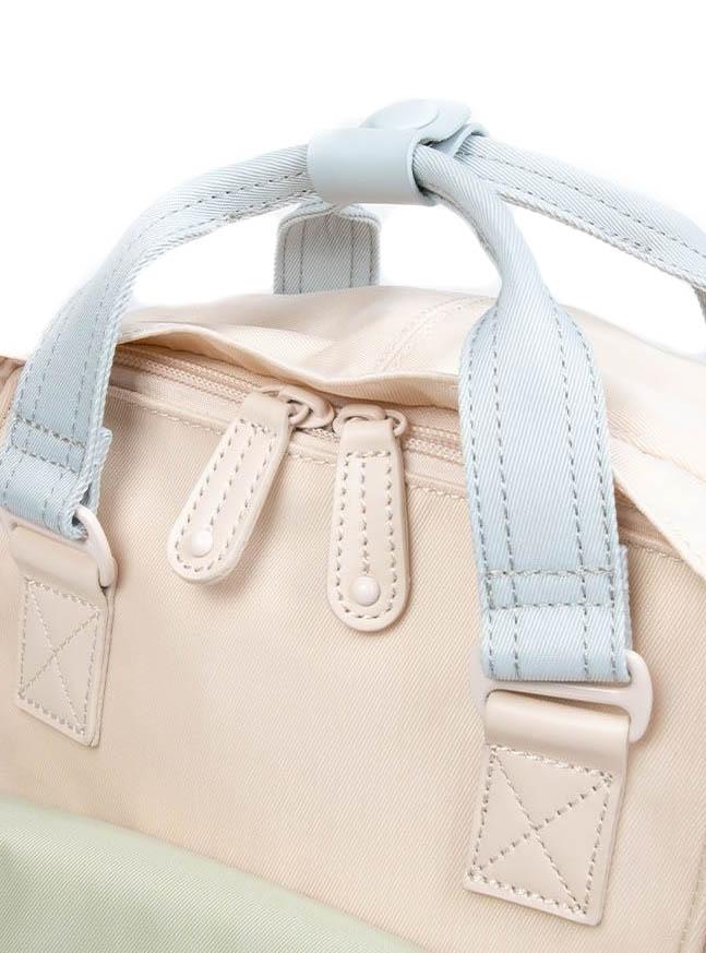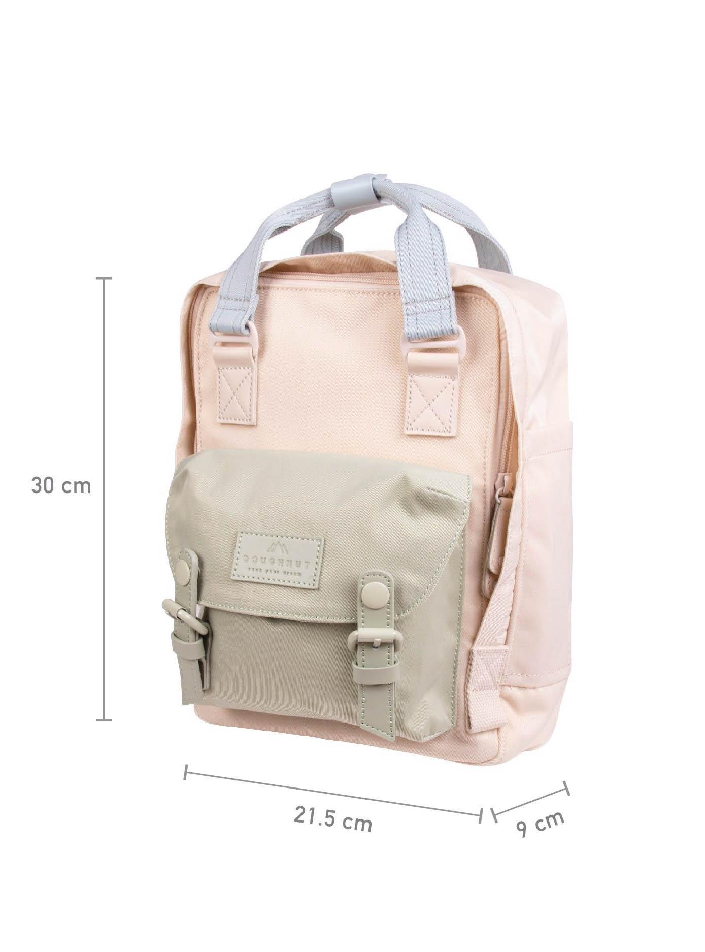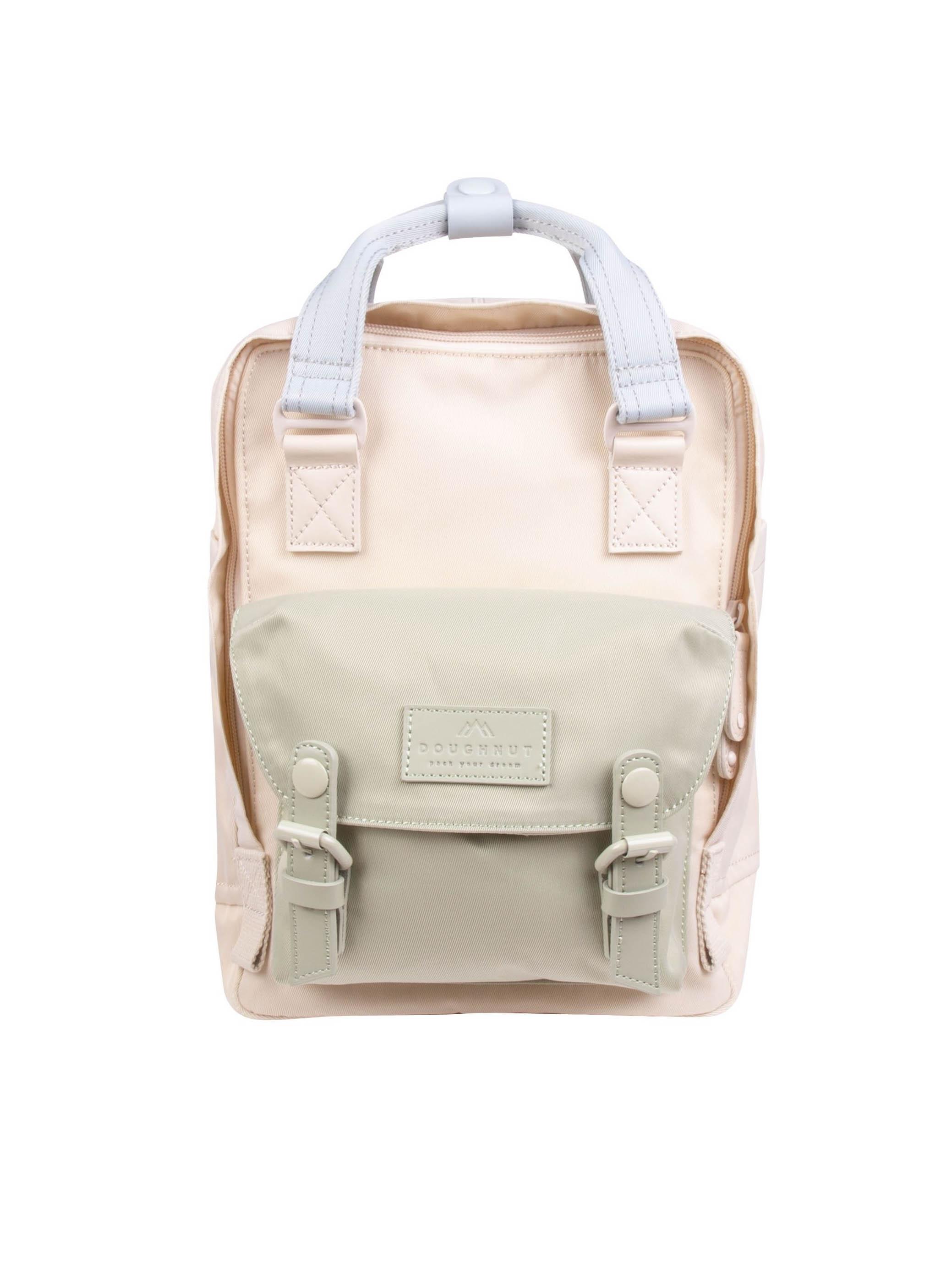 Mochila Doughnut. Modelo Macaroon mini. Natureza pálida. Fecho com zíper. Vários compartimentos. Alças ajustáveis. Bolso exterior com botões. Dimensões 21,5 cm x 9 cm x 30 cm. Capecity 7L.
