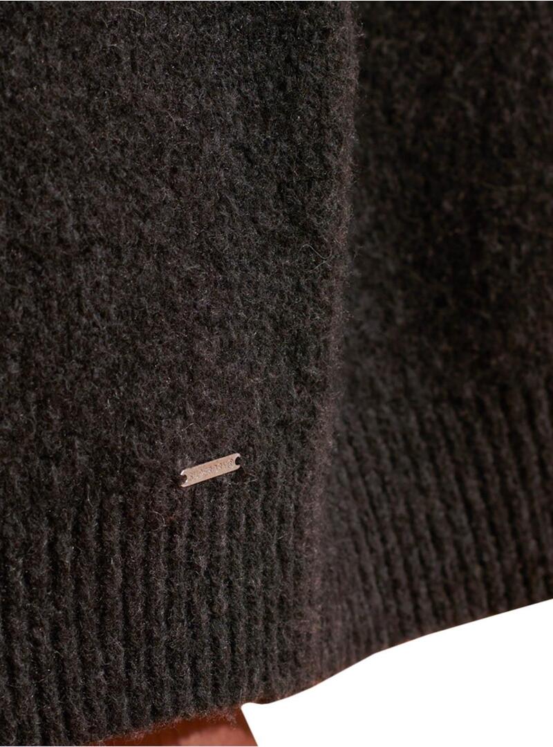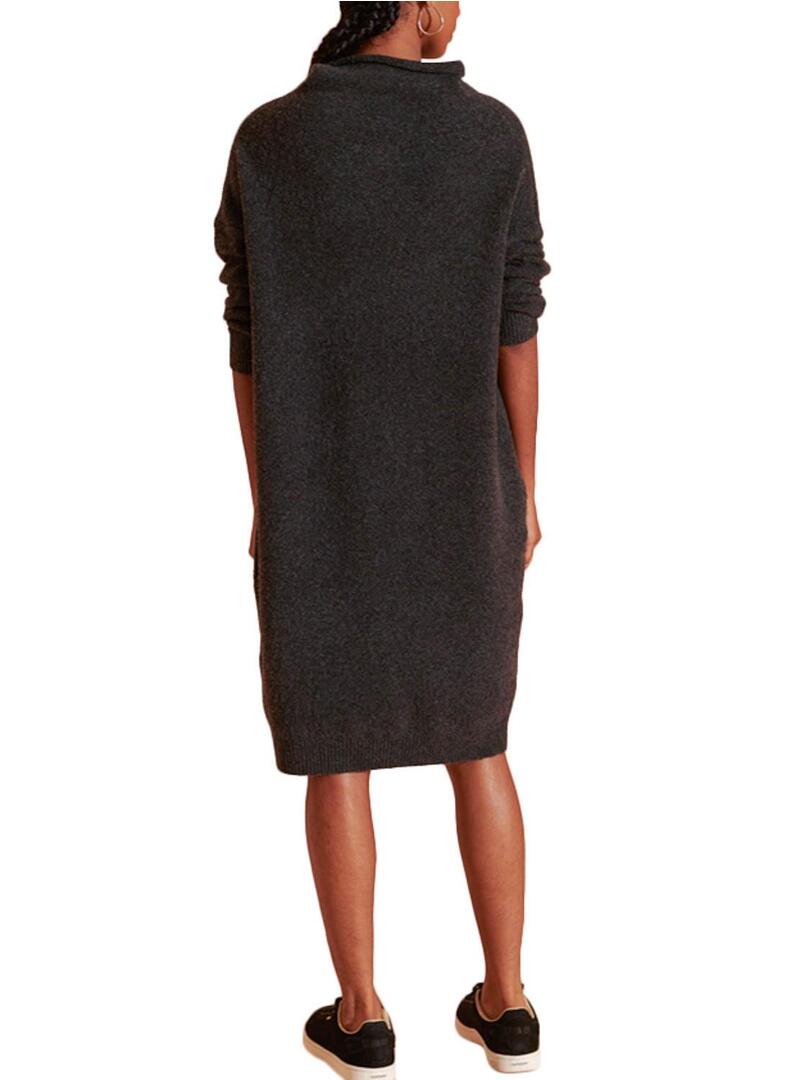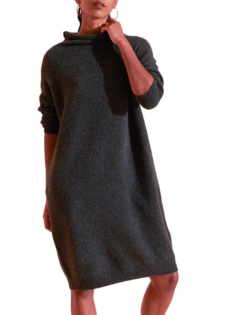 Vestido Superdry. Modelo Isabella. Cor cinza claro. Pescoço de funil. Canal nos punhos e na bainha. Etiqueta metálica com logotipo.