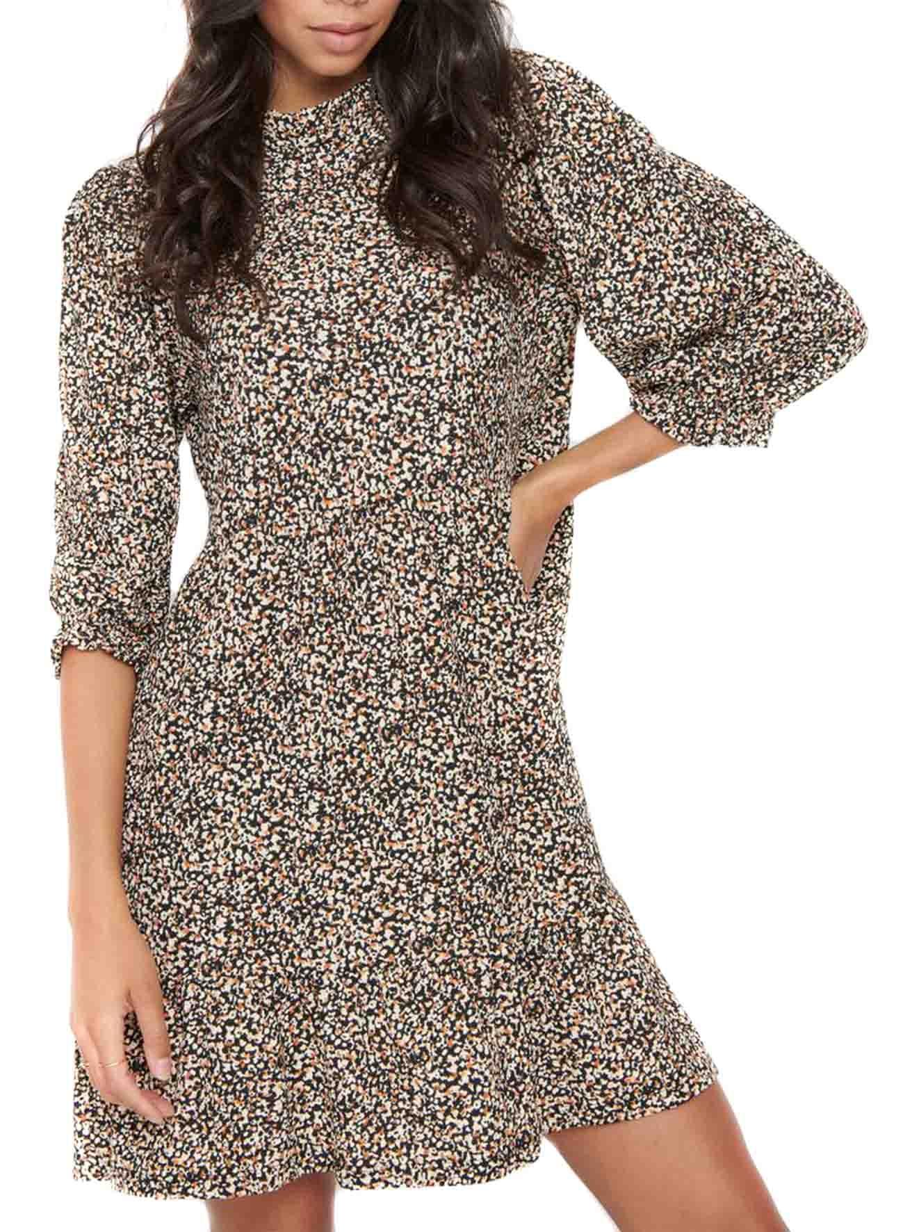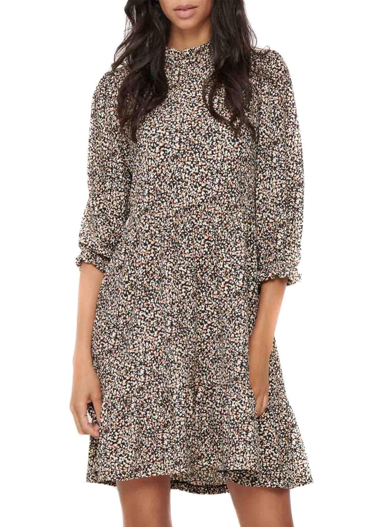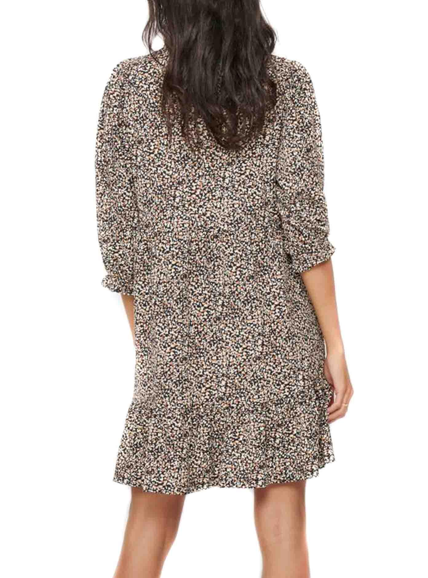 Vestido Only. Modelo Zille Naya. Estampa floral. Babados decorativos. Tecido elástico. Punhos com babados. Pescoço longo.