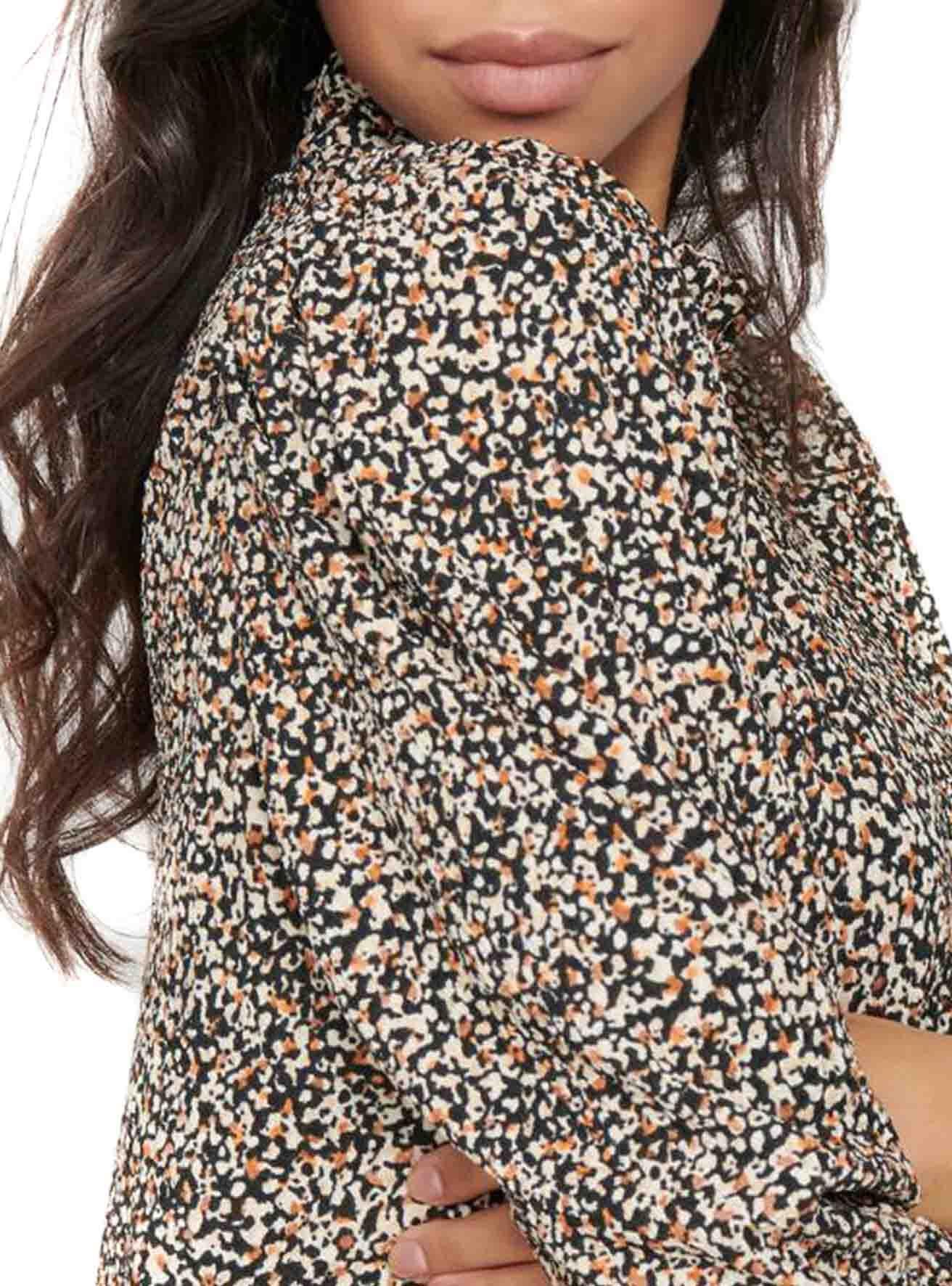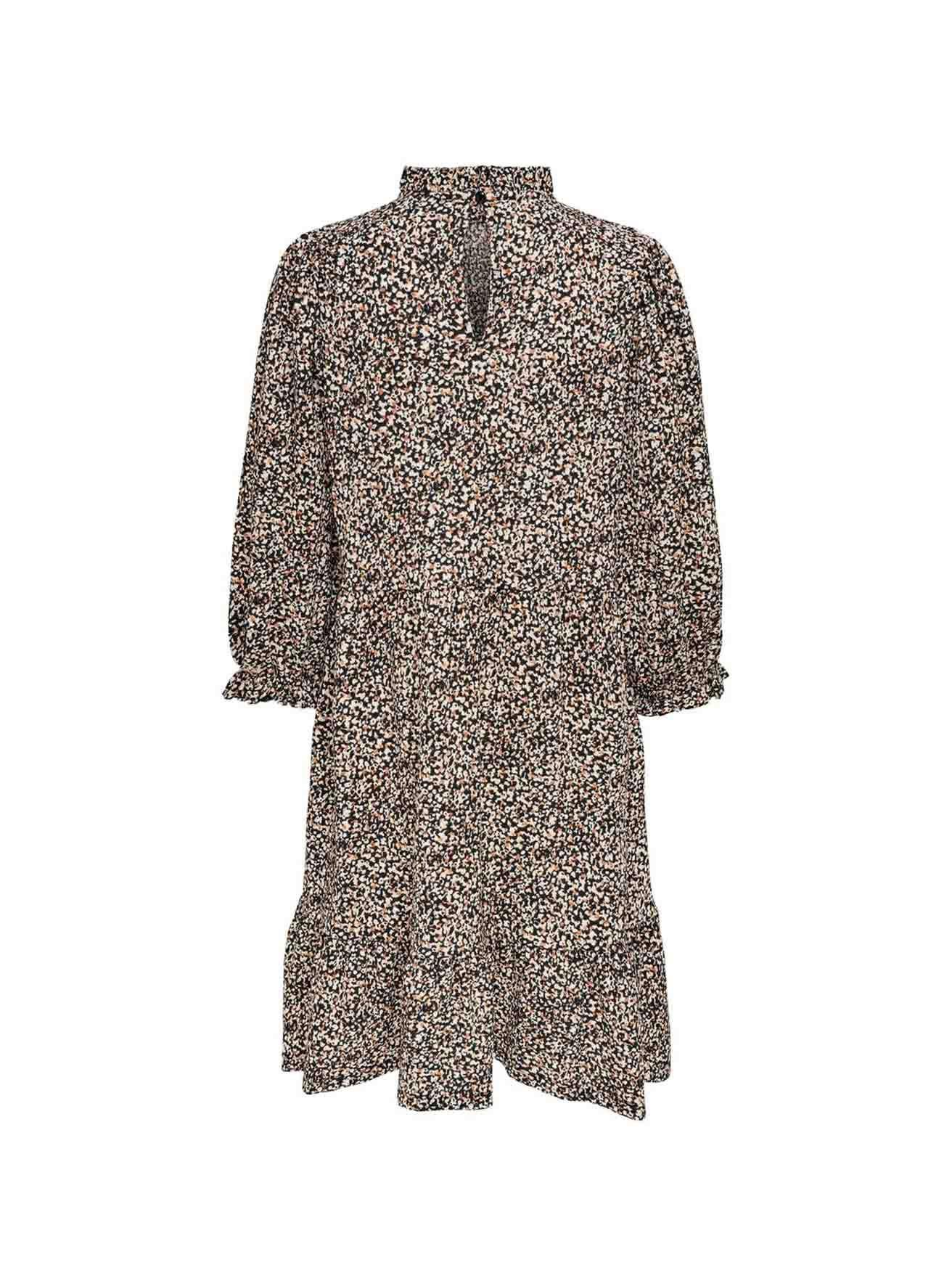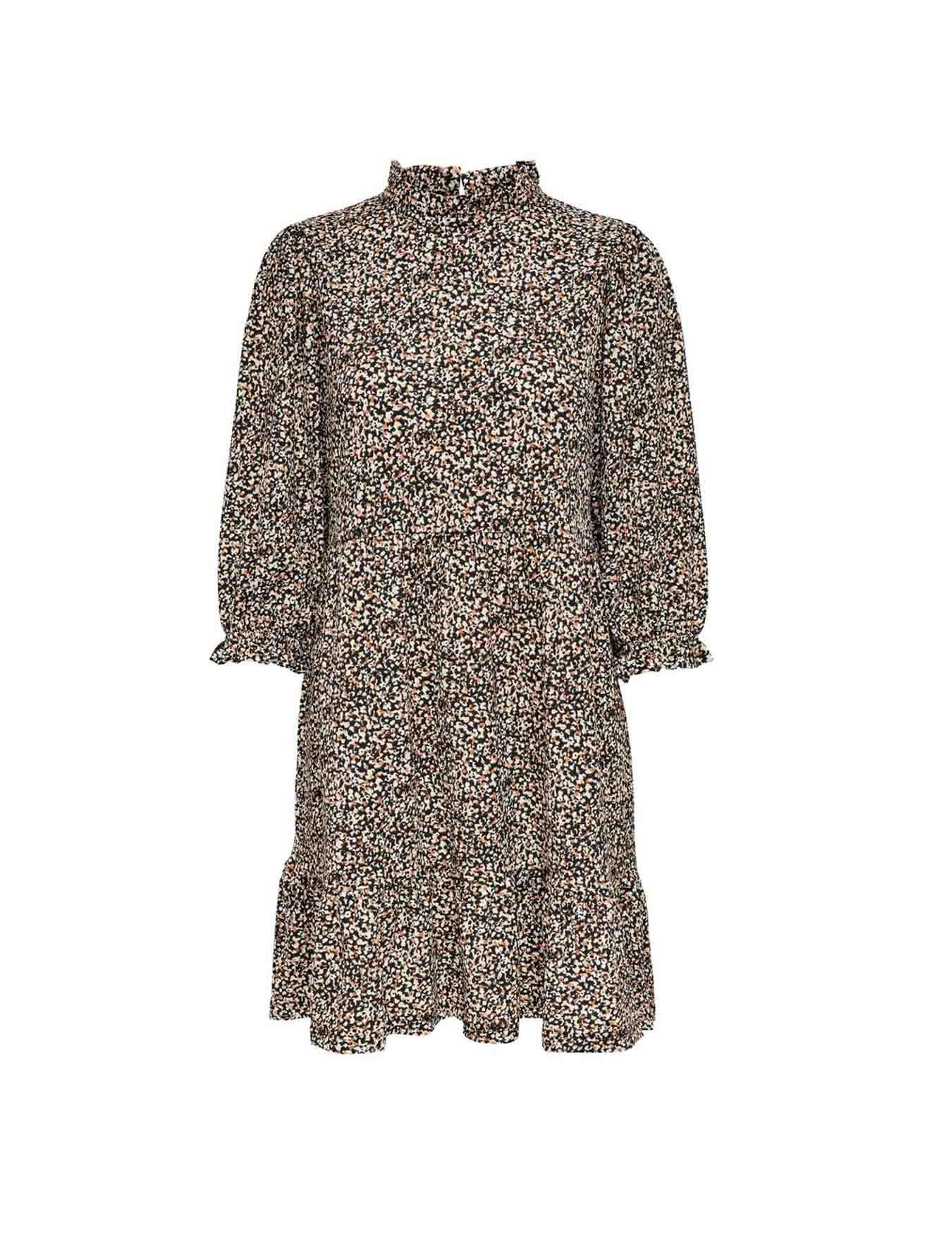 Vestido Only. Modelo Zille Naya. Estampa floral. Babados decorativos. Tecido elástico. Punhos com babados. Pescoço longo.