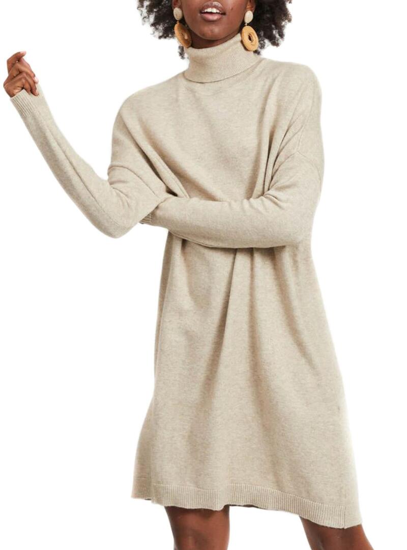 Vestido Vila. Viril rollneck model. Cor bege. Estilo de lado externo. Pescoço longo. Manga comprida. Gola, punhos e bainha nervurada.