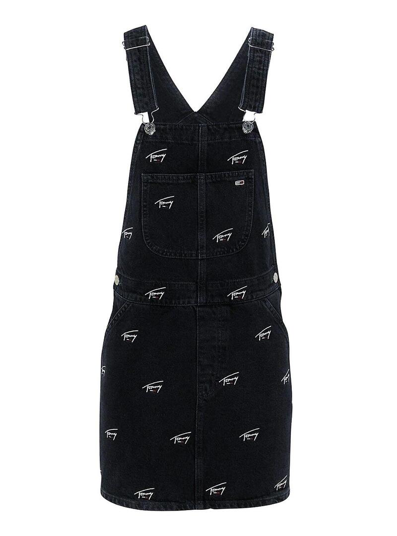 Vestido Tommy Jeans Dungaree Preto para Mulher