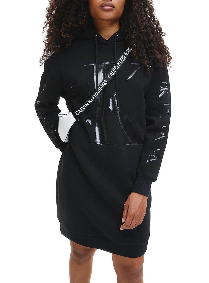 Vestido Calvin Klein Logo Hoodie Preto para Mulher