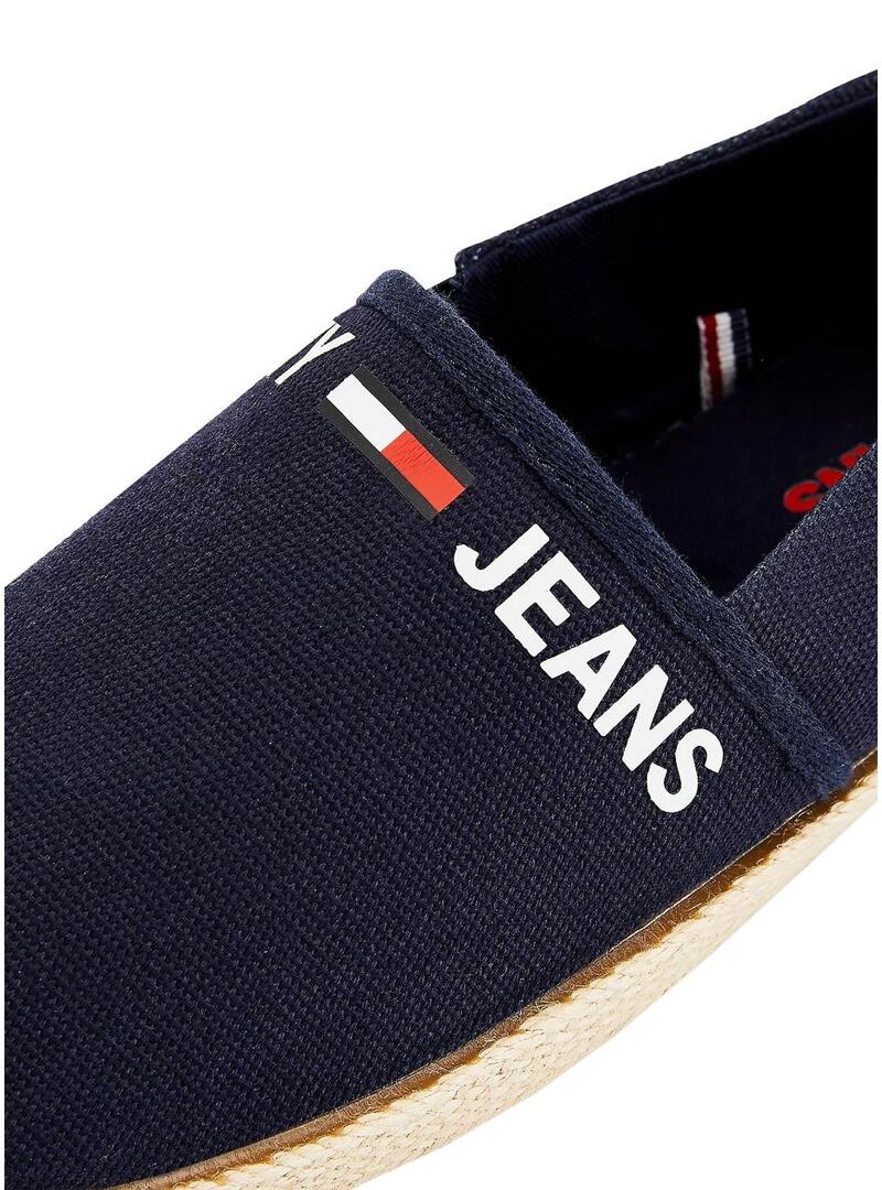 Espadrilles Tommy Jeans. Modelo do logotipo da Espadrille. Cor da Marinha. Logótipo no peito do pé. Parte de cima feito de algodão. Sola borracha. Palmilha de algodão.