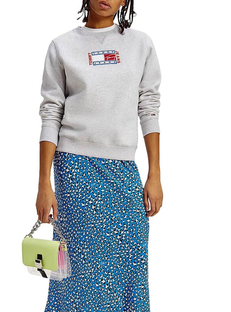 Sweat Tommy Jeans Timeless Flag Cinza Mulher