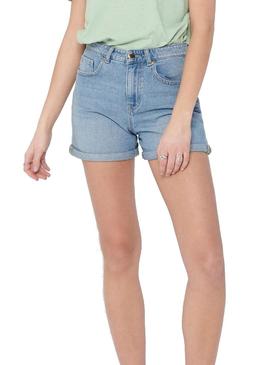 Short Only. Modelo fino. Azul claro. Botão e fecho de correr. Bolsos laterais e traseiros. Bainha com dobra. Clipes. Regular fit. A modelo usa tamanho S.