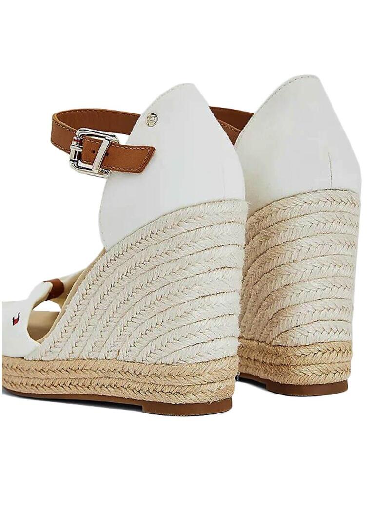 Sandálias Tommy Hilfiger. Modelo Basic Open Toe. Cor branca. Altura da cunha 10,5 cm. Plataforma de 2,5 cm de altura. Fecho de alça ajustável no tornozelo. Logotipo bordado. Forro de juta.