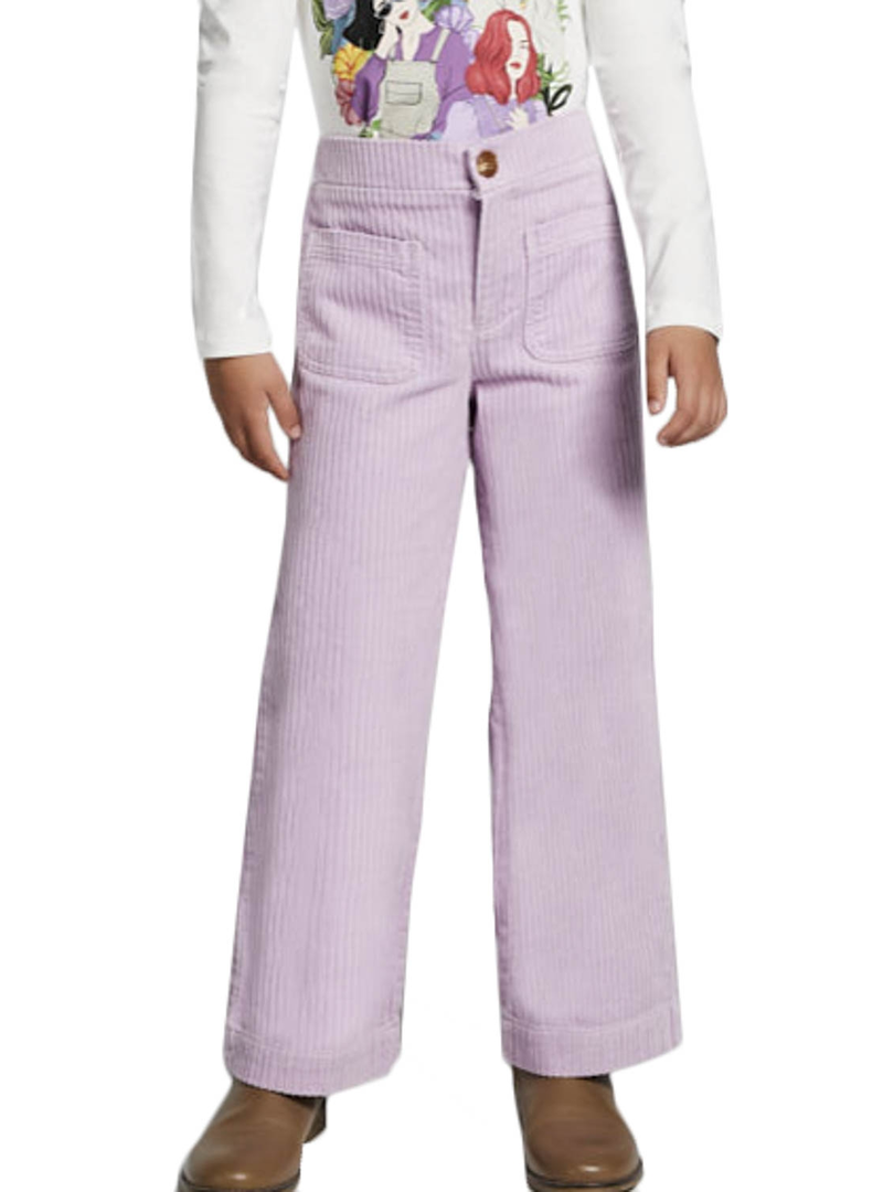 Calças Mayoral. Tecido de veludo cotelê. Cor púrpura. Cintura elástica borracha. Bolsos laterais. Botão e fecho de correr.
