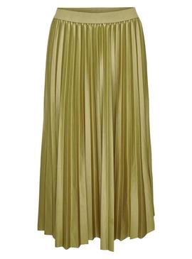 Saia Only. Plissado. Formato Midi. Tecido brilhante. Cintura borracha.