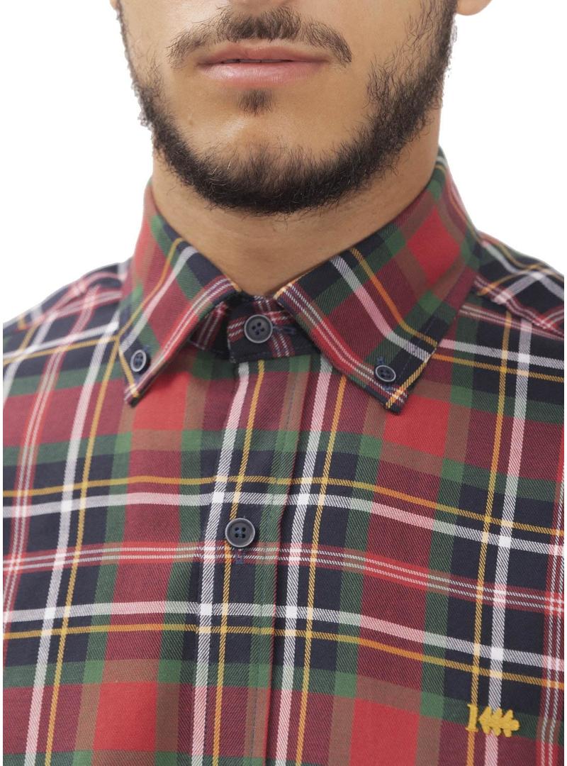 Camisa Klout. Modelo Royal Stewart. Cor vermelha. Impressão Tartan. Logótipo bordado no peito. Fechamento de botão. Regular fit