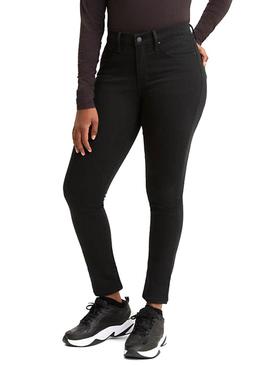 Jeans Levis. Modelo 311 Skinny. Cor preta. Cinco bolsos. Botão e fecho de correr. Correias de cinto para belt. Tecido elástico. Cabe na perna. Mulher para.