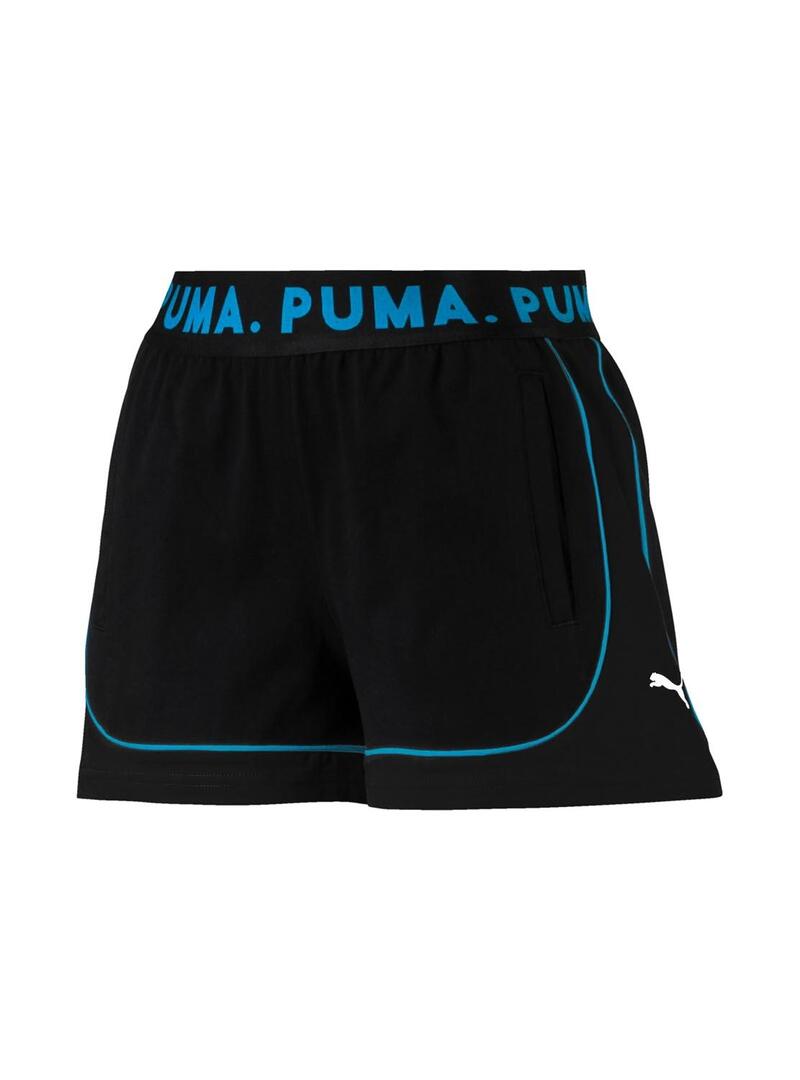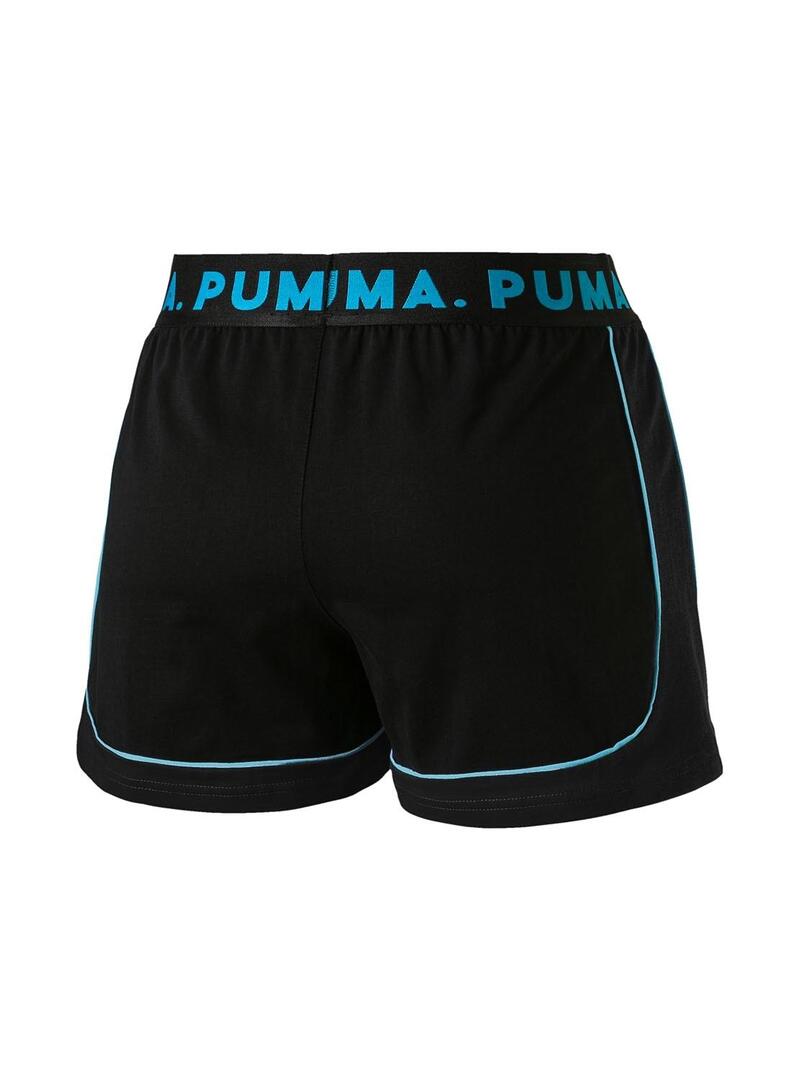 Shorts Puma. Modelo Chase. Cor preta. Estampagem da marca no topo. Bandas de contraste. Cintura elástica.