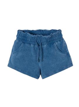 Short Mayoral. Cor azul. Efeito lavado. Cintura elástica com borracha. Cordão ajustável na cintura. Bolsos laterais.
