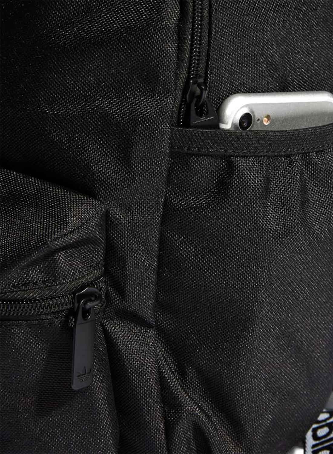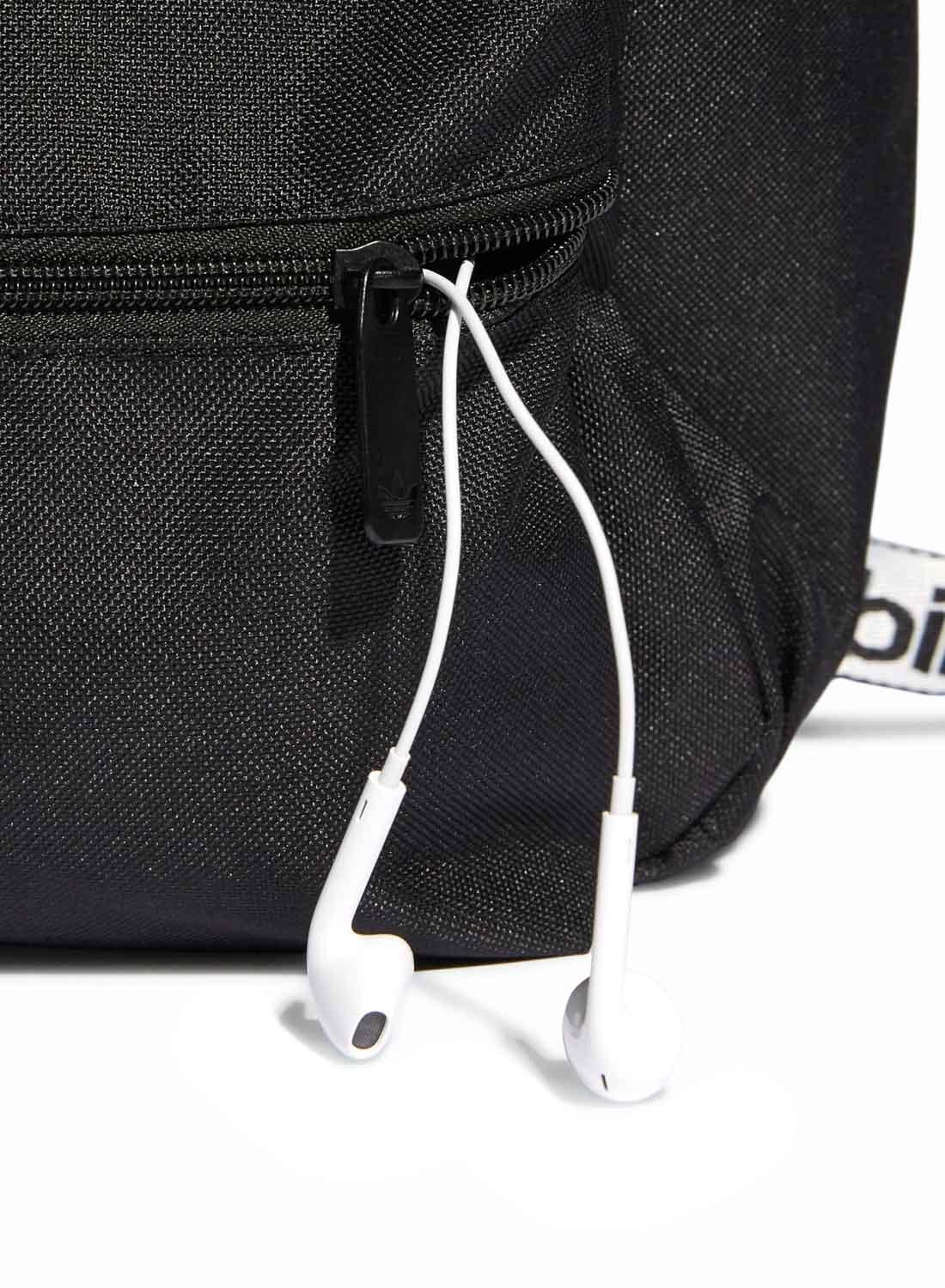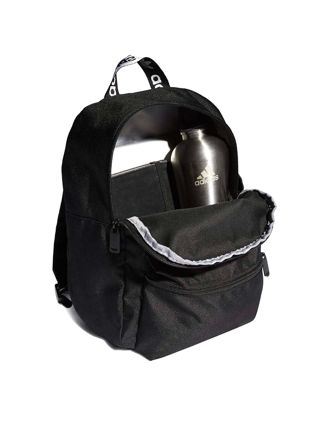 Mochila Adidas pequeno. Modelo Adicolor Classic. cor preta. Fecho com zíper. Logo na frente em branco. Bolso frontal. Alça superior fixa com letras contrastantes. Alças ajustáveis. Medidas 10cm x 23cm x 31cm.
