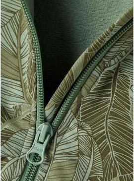 Casaca Fato de treino Name It. Modelo Frank. Cor verde. Estampa de plantas. Fechamento frontal com zíper. Extremidades ranhuradas com borracha. Pescoço redondo.