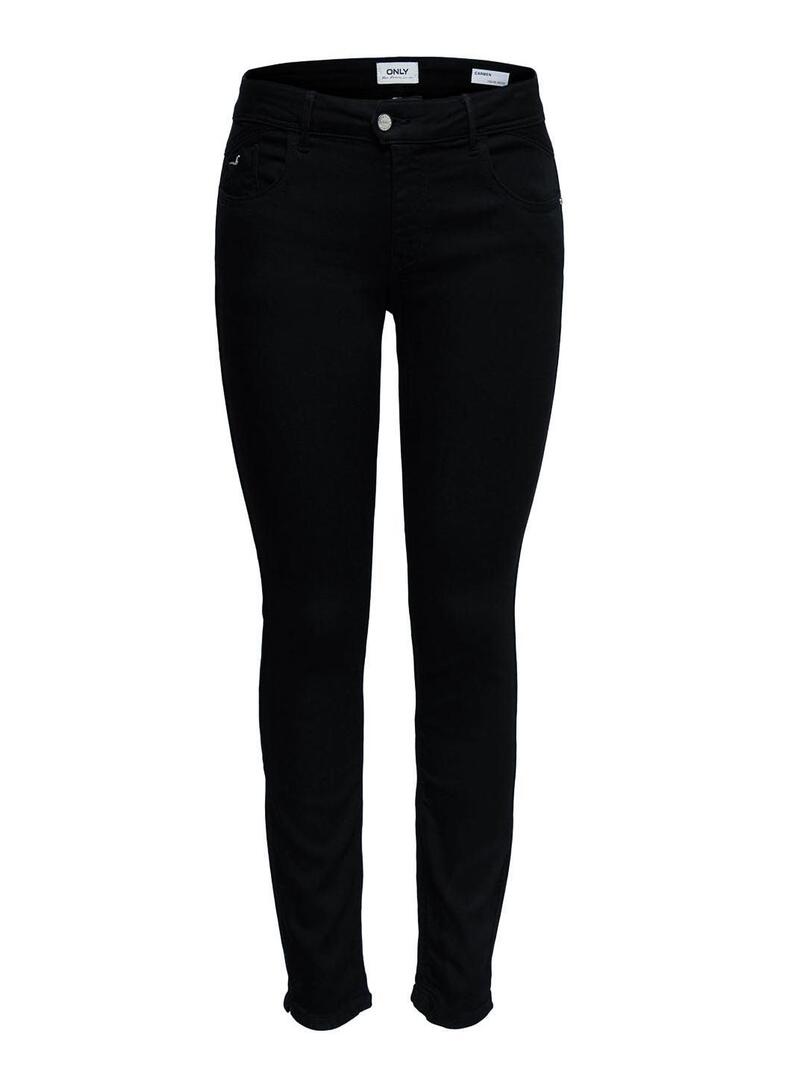 Jeans Only. Modelo Carmen ANK. Cor preta. 5 bolsos. Perto da frente. Tecido elastico. Ajuste Skinny.