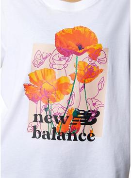 T-Shirt New Balance. Cor branca. Manga curta. ajuste solto Logo New Balance de inspiração clássica. estampa floral Pertence à iniciativa Better Cotton. Ajude a promover práticas de cultivo de algodão mais sustentáveis.