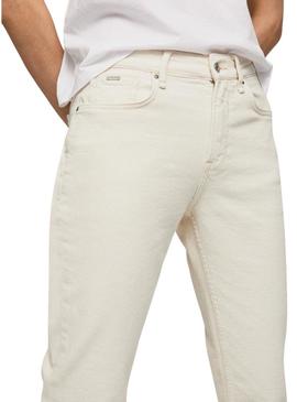 Jeans Pepe Jeans. Cor branca. Mary modelo. Cinco bolsos. Presilha de cinto para . Etiqueta na parte de trás. Fechamento por botão e zíper.
