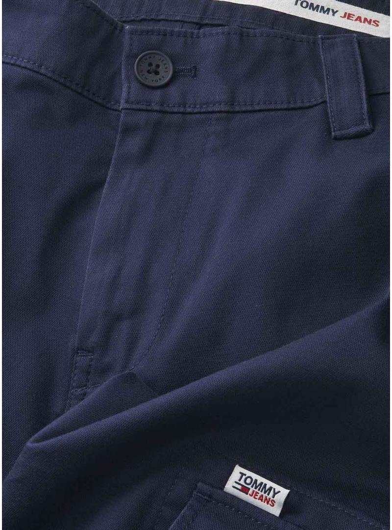 Calças Tommy Jeans. Cor da Marinha. Modelo Sacanton. Dois bolsos nas laterais, um bolso na coxa e outro na parte de trás. características do Tommy Jeans. Aba no bolso da coxa. Presilhas de cinto para . Feche frontal.