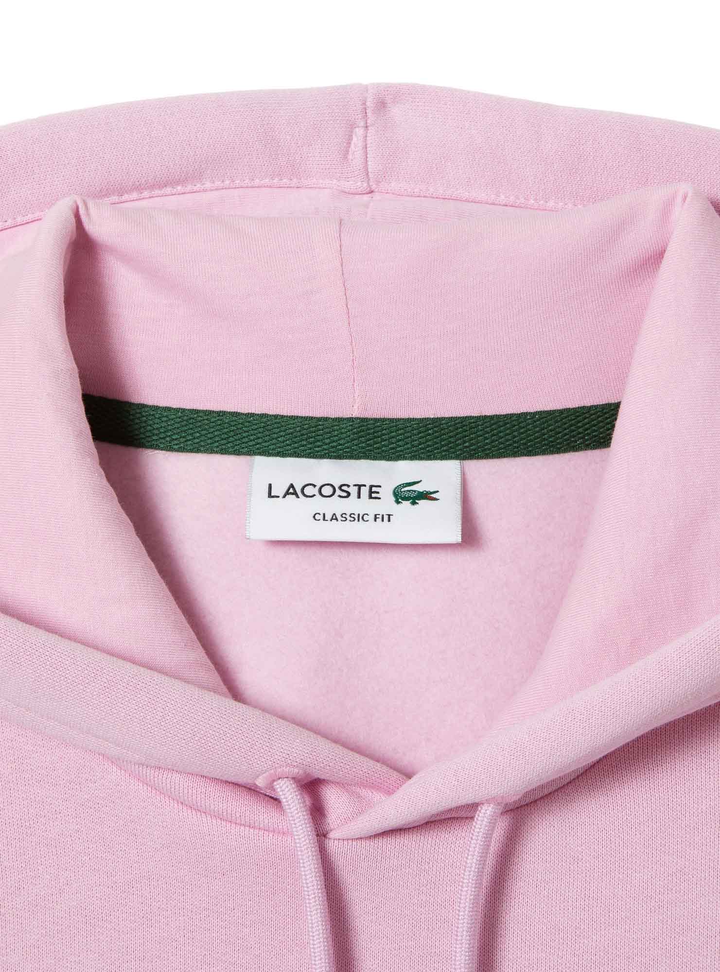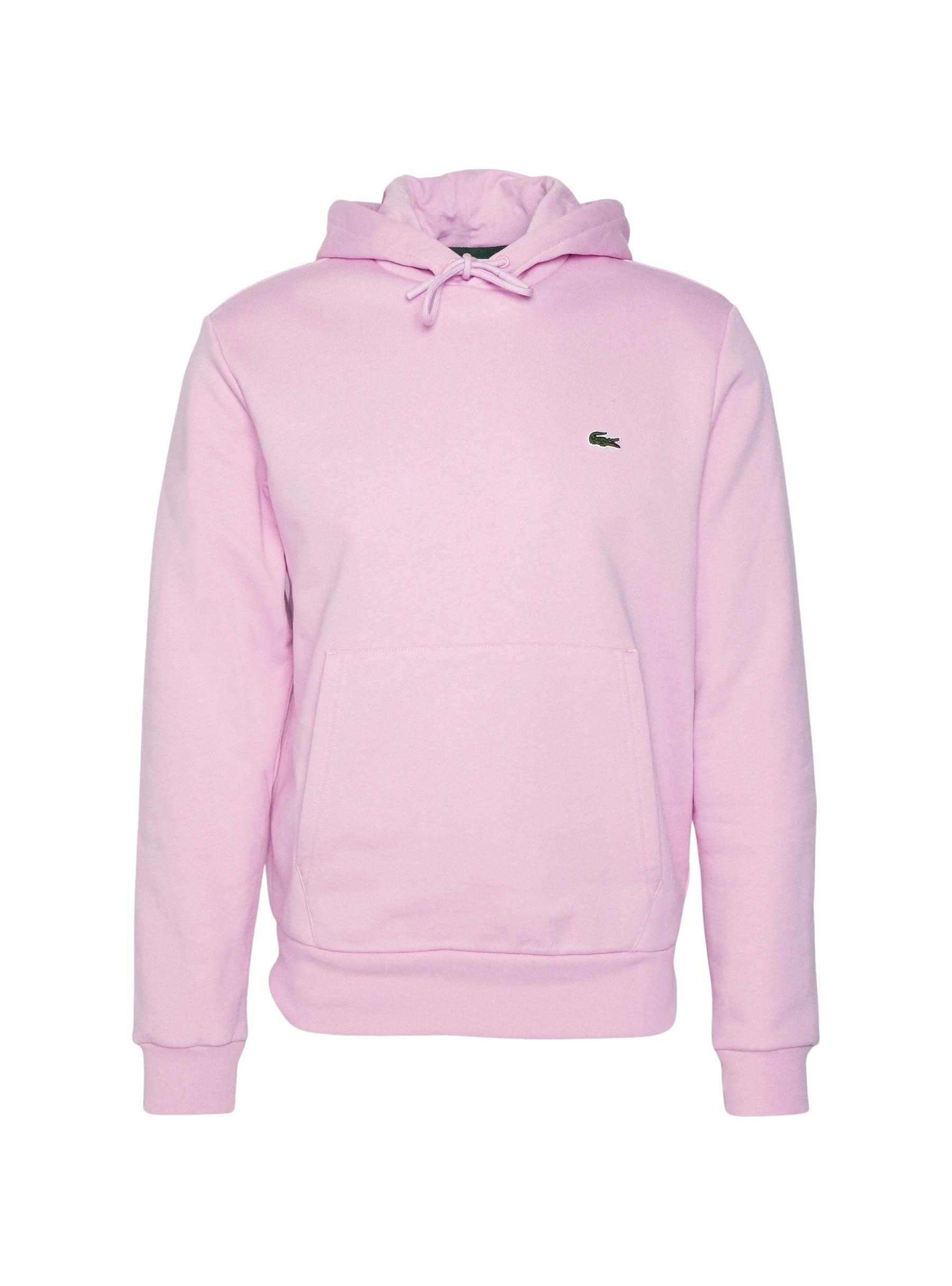 Sweat Lacoste. Básico. Cor rosa. Capuz com cabo. Bolso canguru. Punhos e barra canelados. Crocodilo bordado no peito.