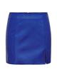 Saia Only. Modelo Leni. Couro Sintético azul elétrico. Fecho com zíper traseira. Mini corte. Ajustado na cintura. Pequena abertura lateral.
