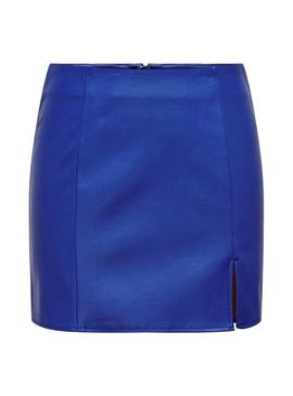 Saia Only Leni Couro Sintético Azul Elétrico para Mulher