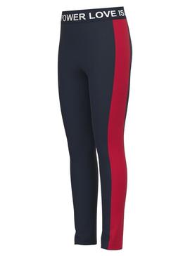 Leggings Name It. Cor preta. Faixa lateral vermelha. Elástico na cintura com mensagem. Modelo Lena. Tecido elástico. Ajuste Skinny.