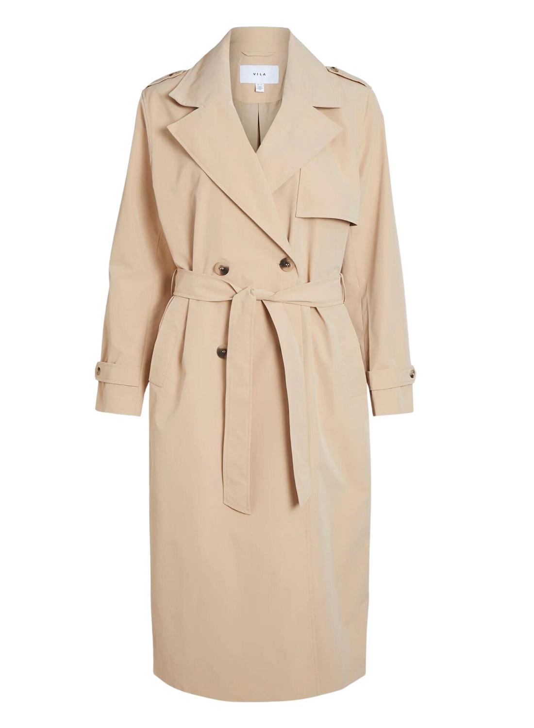 Gabardine Vila. Trench coat clássico com abotoamento duplo. Cinto removível. Bolsos laterais abertos. Detalhe de botões nos ombros e mangas. Comprimento: 124 cm no tamanho 38. Comprimento da manga: 59 cm no tamanho 38.