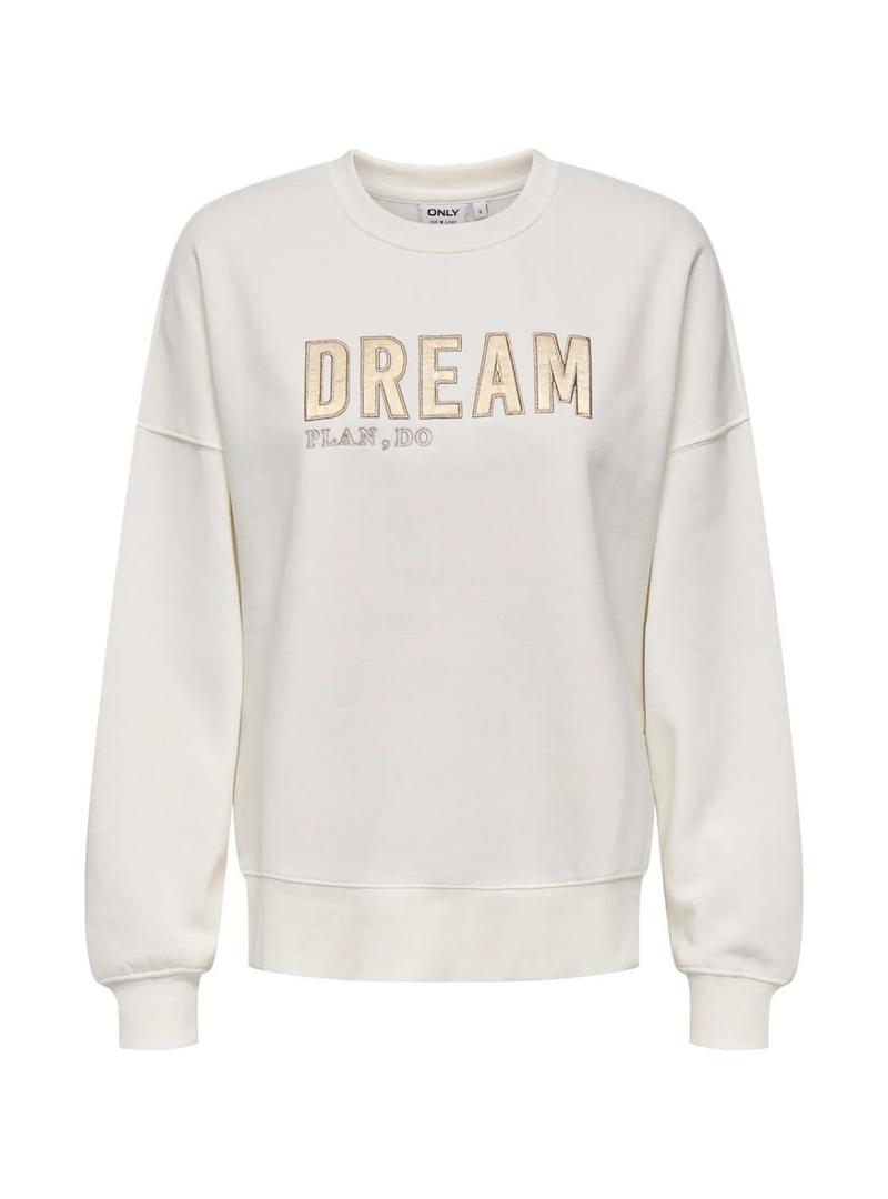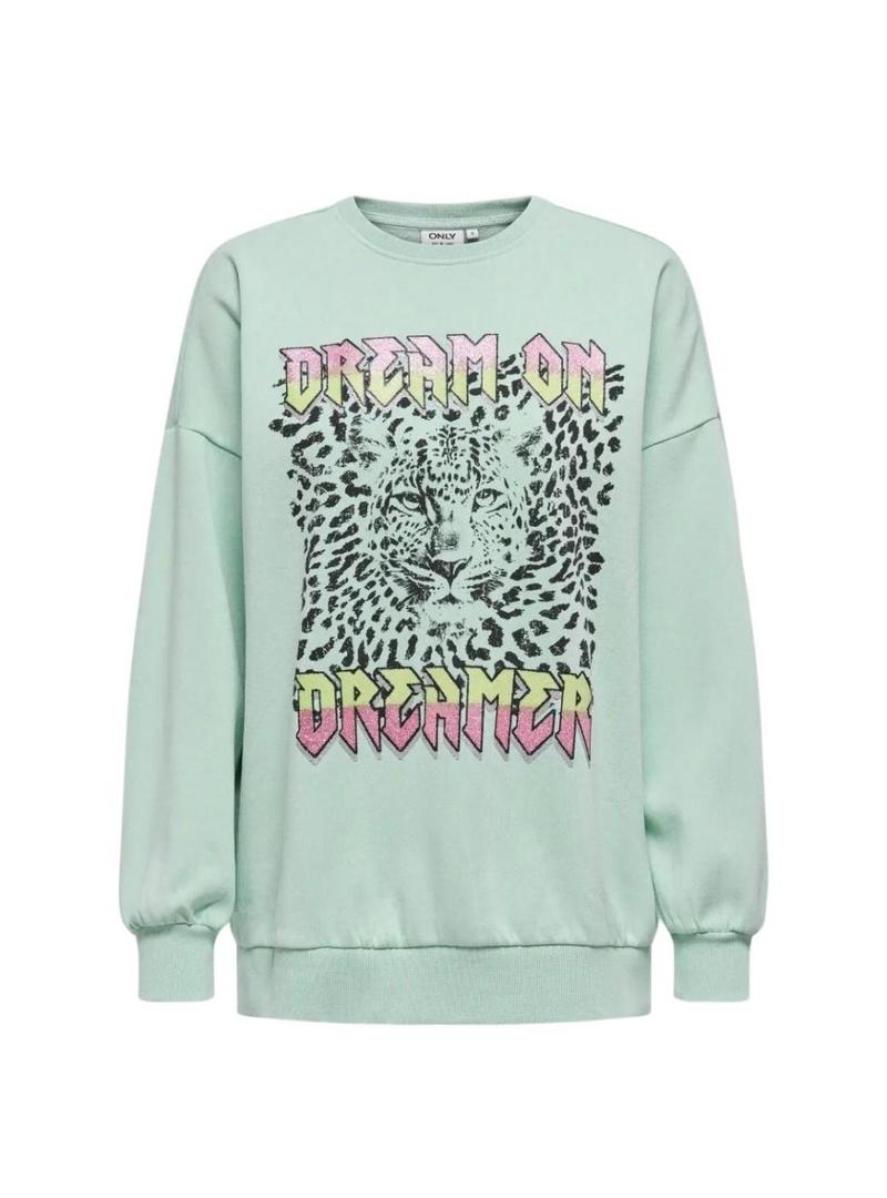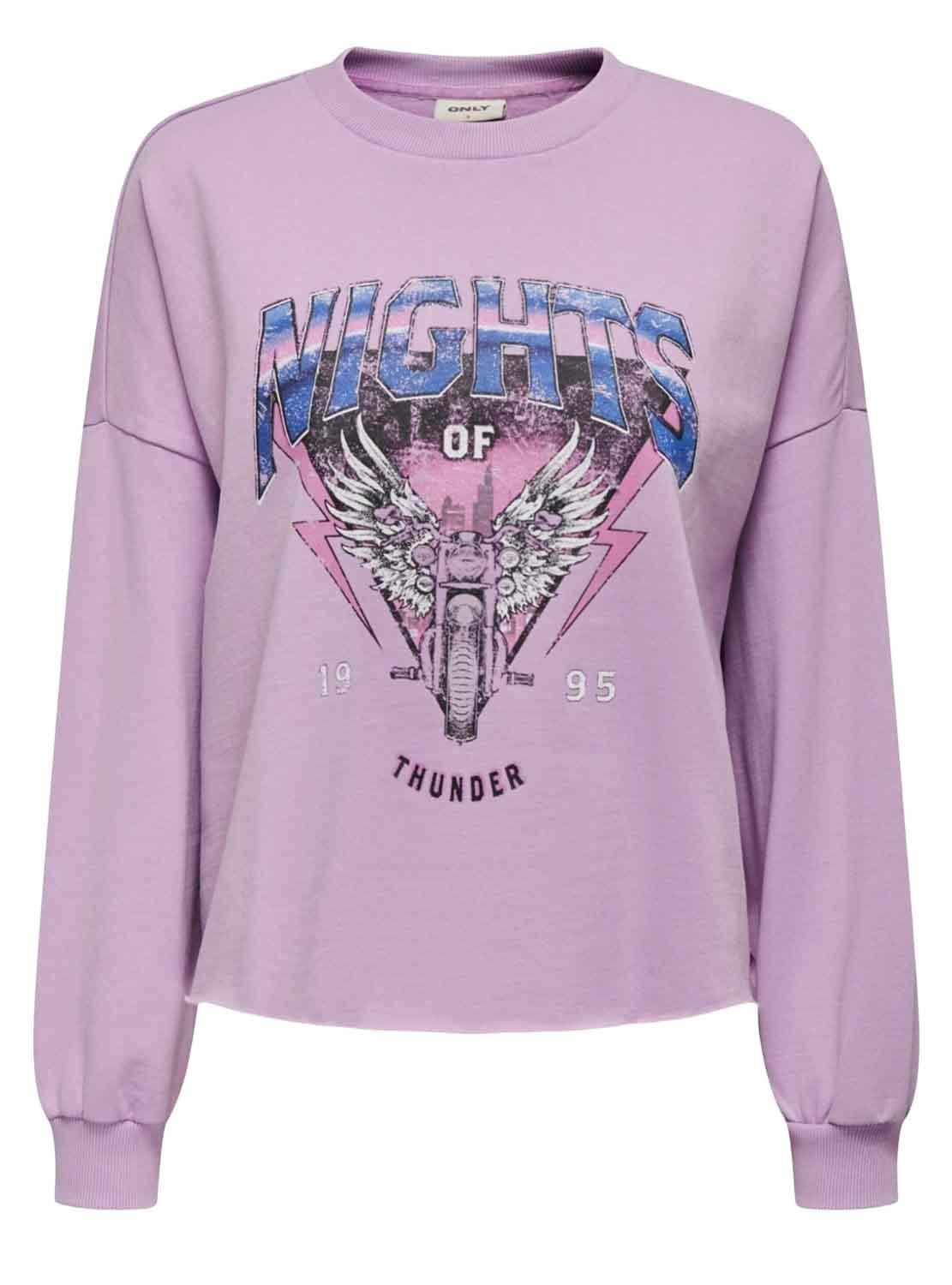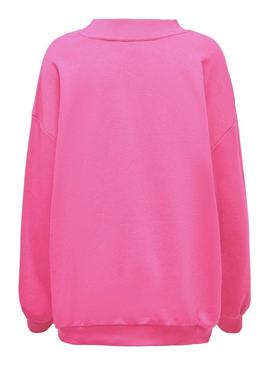 Sweat Only. Decote, barra e punhos canelados. Sem capuz e gola redonda. Cor fúcsia. Printed com mensagem e grafismo oversize no peito. Costas lisas. Modelo da Universidade Luna. Design de ombro caído relaxado.