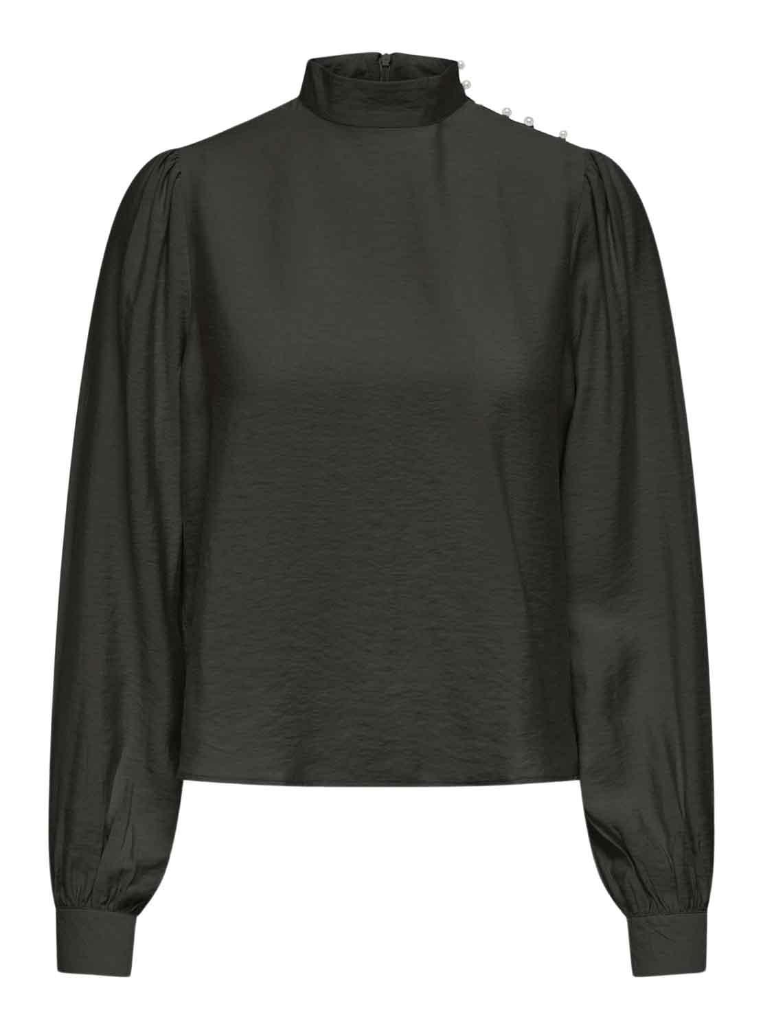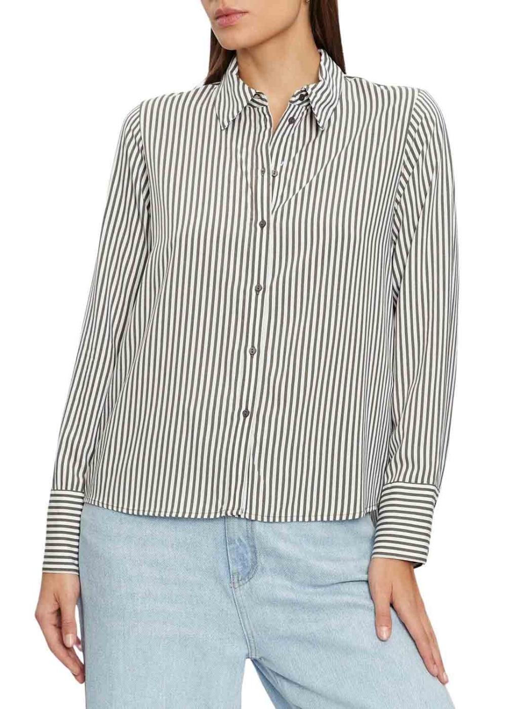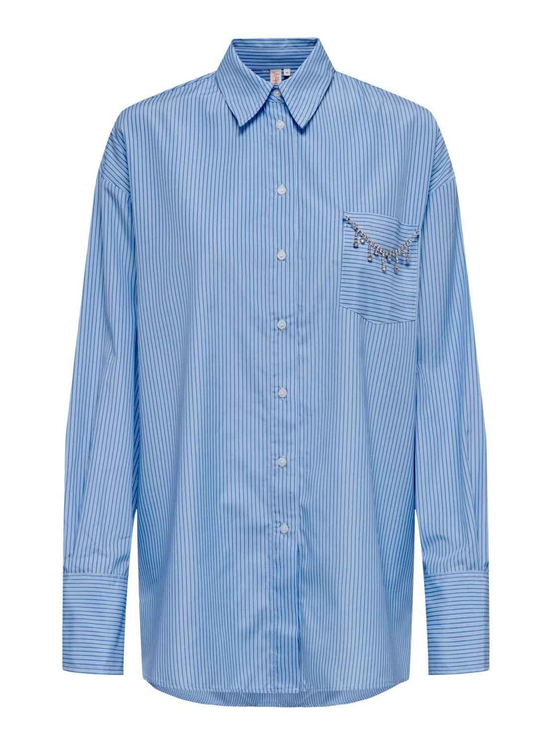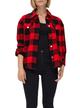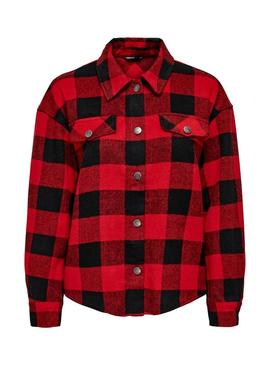 Overshirt Only para mulher. Vermelho e preto. Printed de quadros. Fechamento frontal com botão. Modelo Marsala. Parte inferior arredondada. pescoço americano. Bolsos com aba no peito. Punhos de botão.