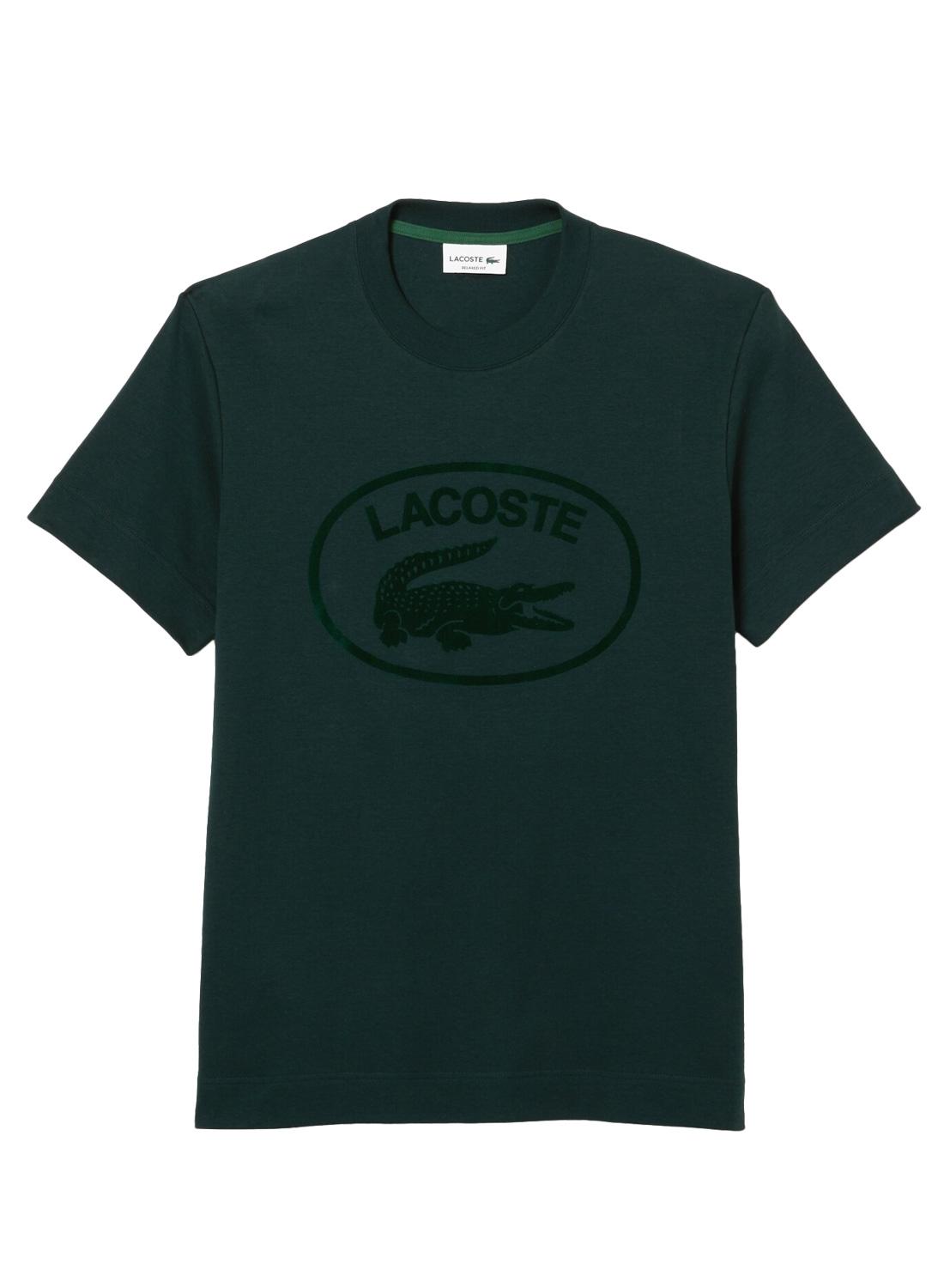 T-Shirt Lacoste para homem. Estampa de crocodilo no peito. Cor verde escuro. Manga curto. Extremidades elásticas. Pescoço redondo.