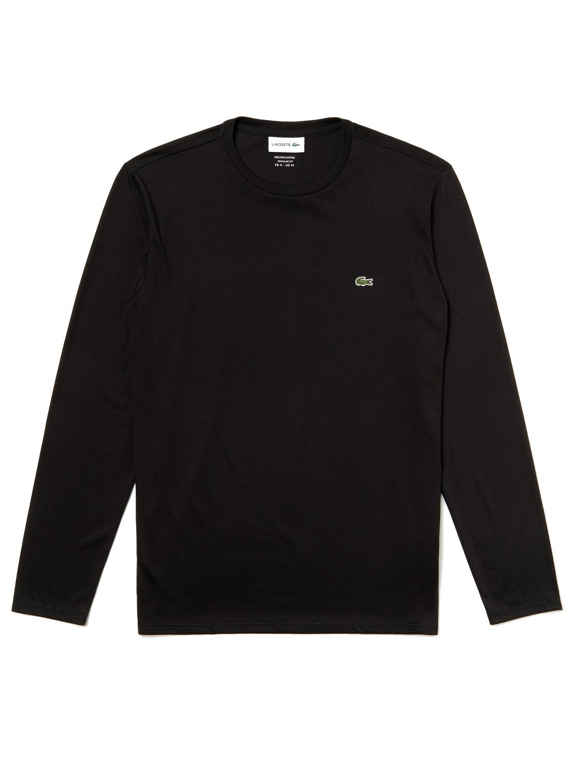 T-Shirt Lacoste. Manga Larga. Gola redonda canelada. Cor preto. Regular fit. Crocodile verde bordado no peito. Algodão (1%). Crocodile verde bordado no peito. Extremidades elásticas. A modelo tem 1m84 e veste tamanho 4.