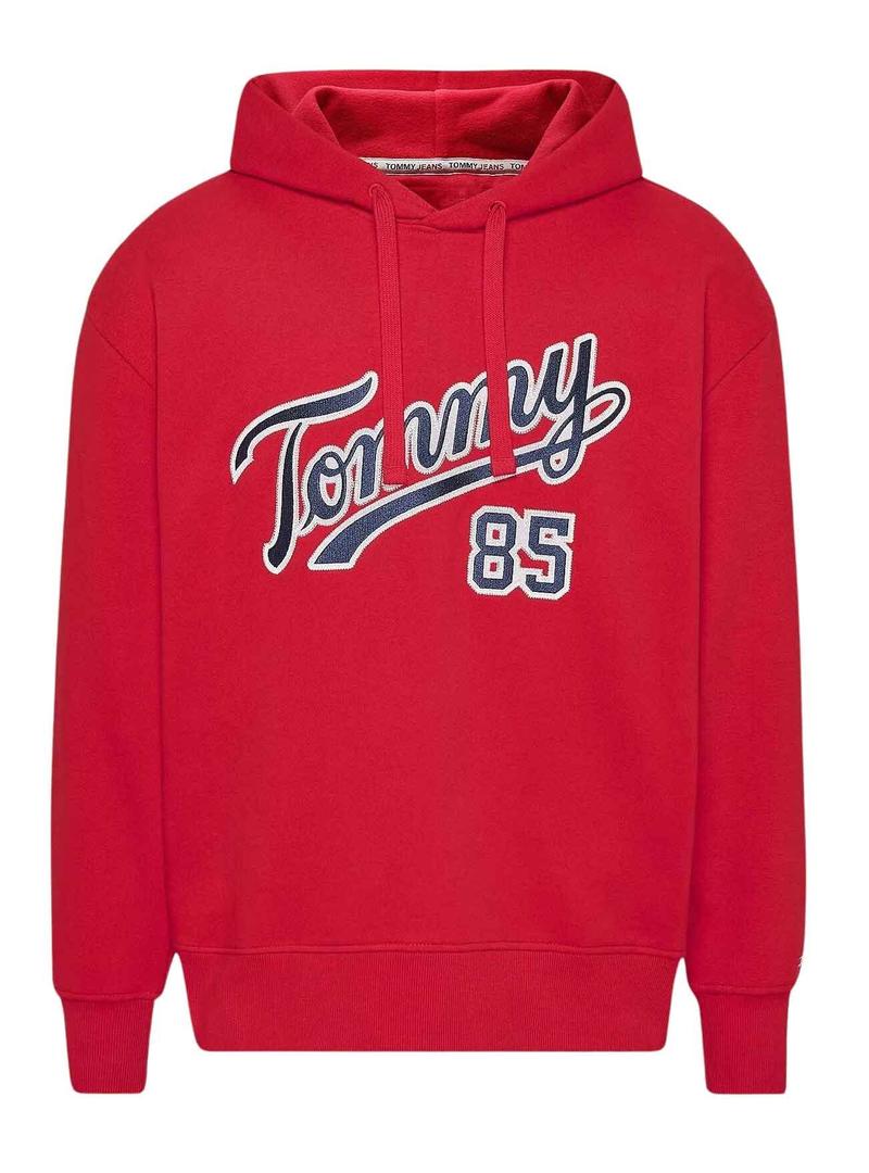 Sweat Tommy Jeans. Gola com capuz e cordão. Cor vermelho. Extremidades elásticas. Modelo Relaxed College. Ombros caídos. Estampa Tommy no peito.