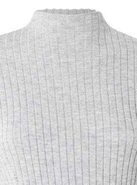 Vestido Pepe Jeans para mulher. Tecido canelado. Pescoço de cisne. Cor cinza. Modelo Belinda. Manga longo. Corte abaixo dos joelhos. Fit normal. Placa de metal com logotipo.