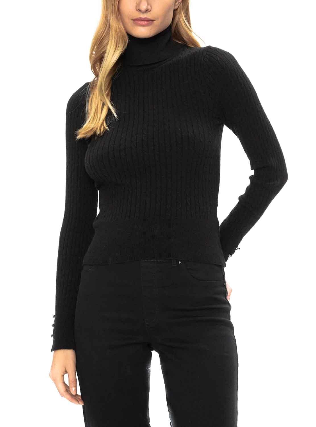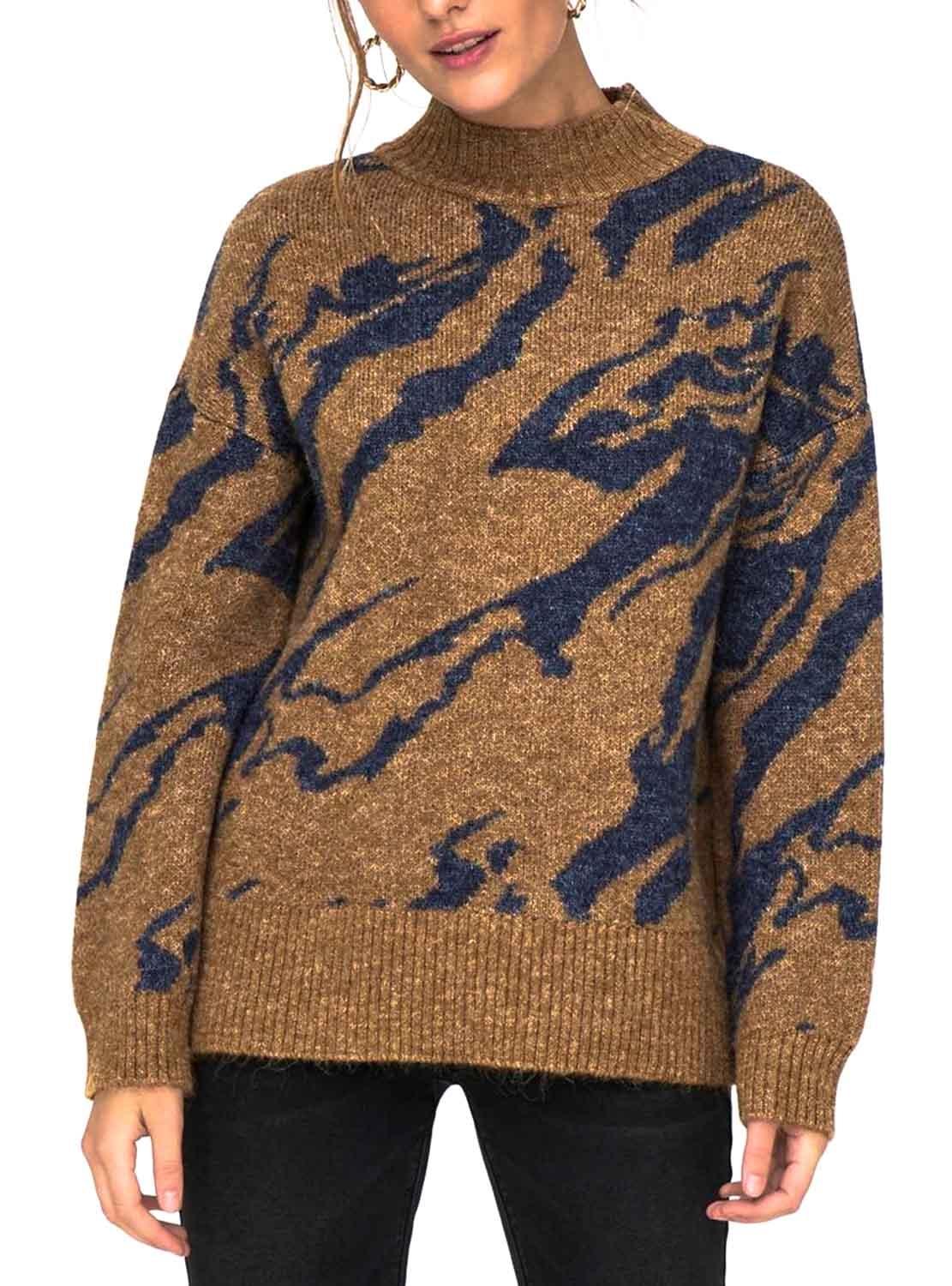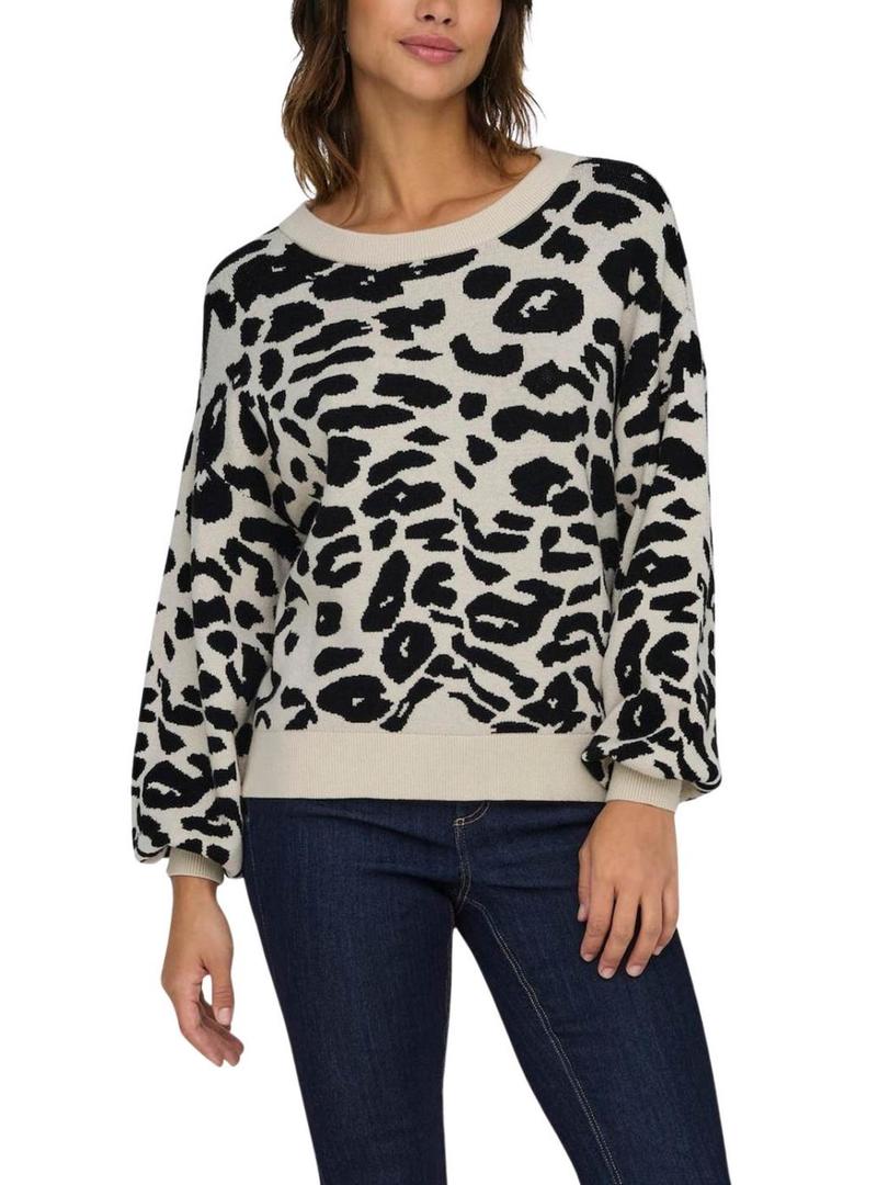 Camisola Only para fêmea. Picos Printed. Modelo Monolisa Life. Cor preto e branco. Extremidades elásticas e pretas.
