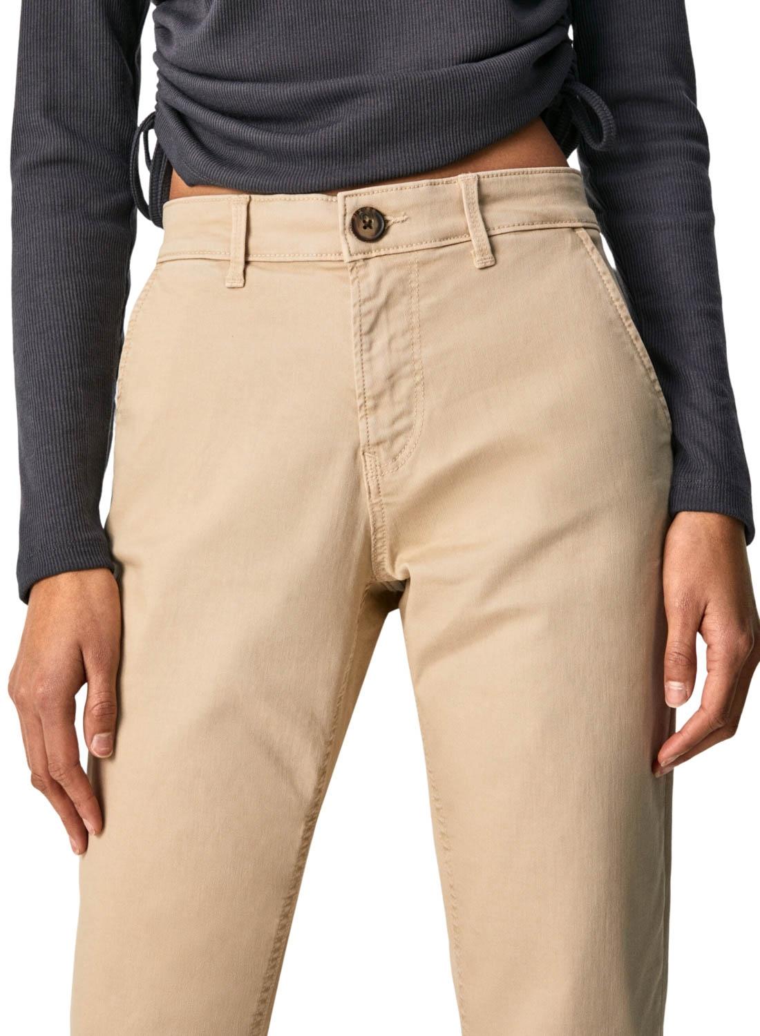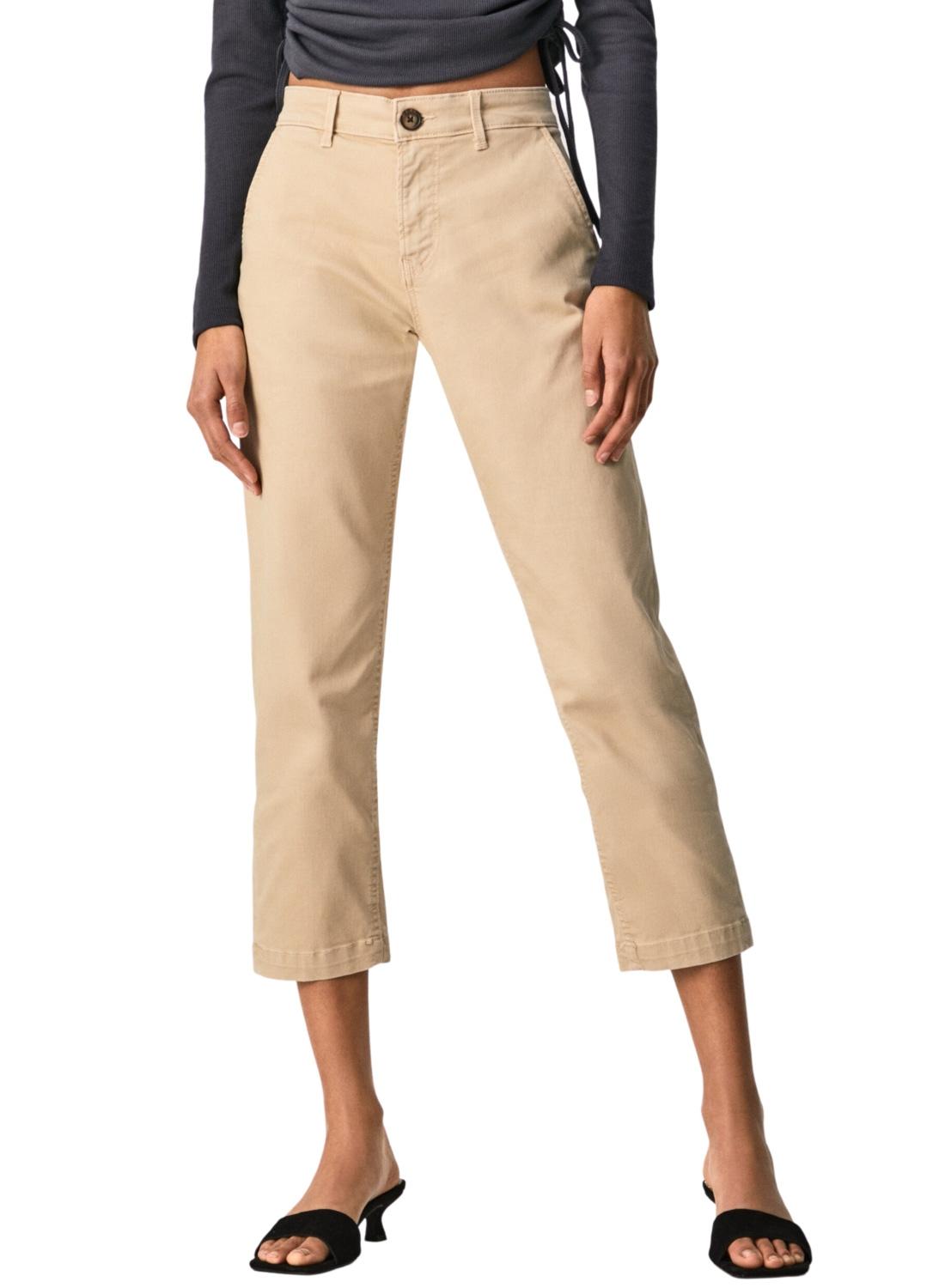 Calças estilo chino de Pepe Jeans. Modelo Mauro. Cor bege. Confeccionado em sarja elástica. Regular fit. Mid rise. Comprimento do tornozelo. Fechamento por botão e zíper.