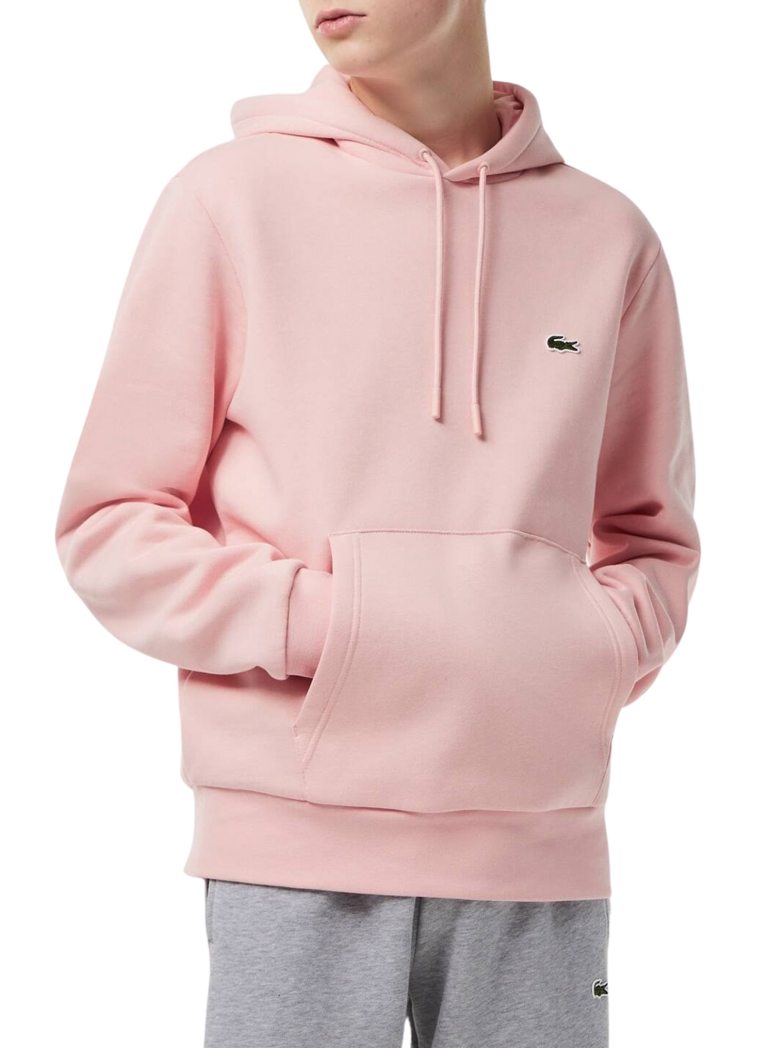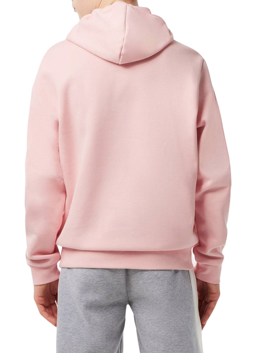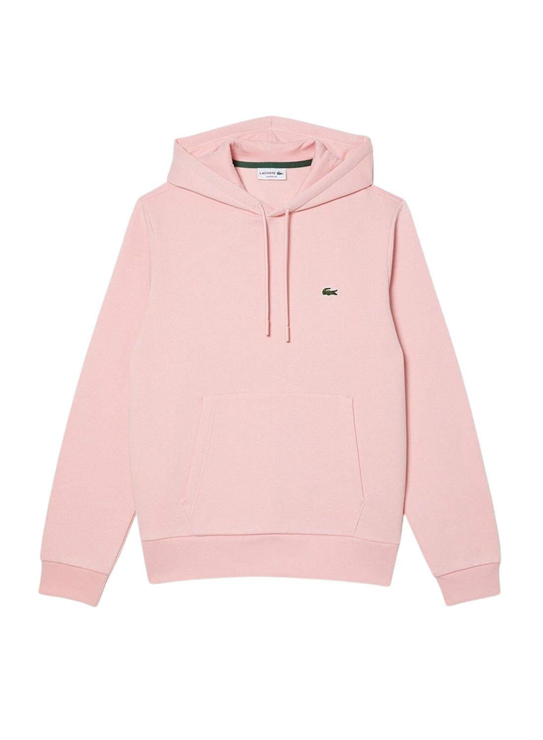 Sweat com capuz Lacoste. Modelo SH9623. Cor rosa claro. Capuz ajustável. Logo no peito. Bolso estilo canguru. Tecido de algodão ecológico. Ajuste Classic.