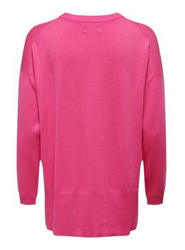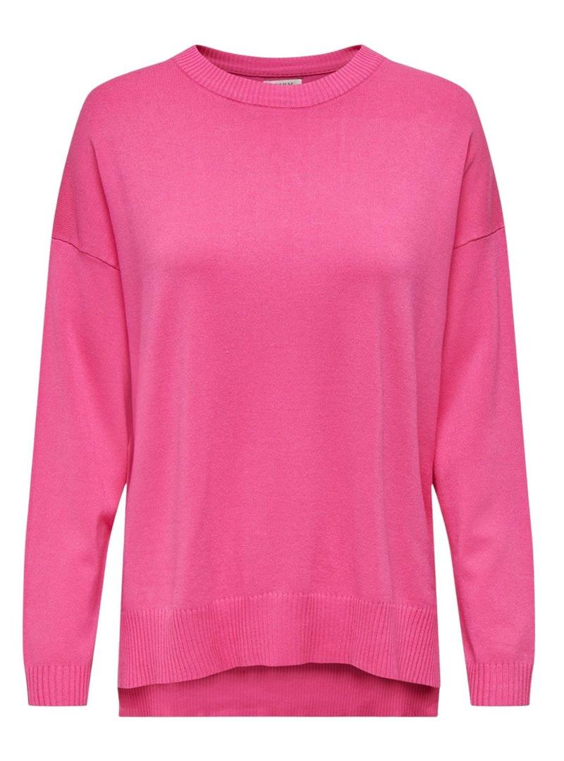 Camisola Only. Modelo medi. Cor rosa. Pescoço redondo. Ombros caídos. Manga longo. Extremidades elásticas. Estilo casual. Tecido misto de viscose e nylon.