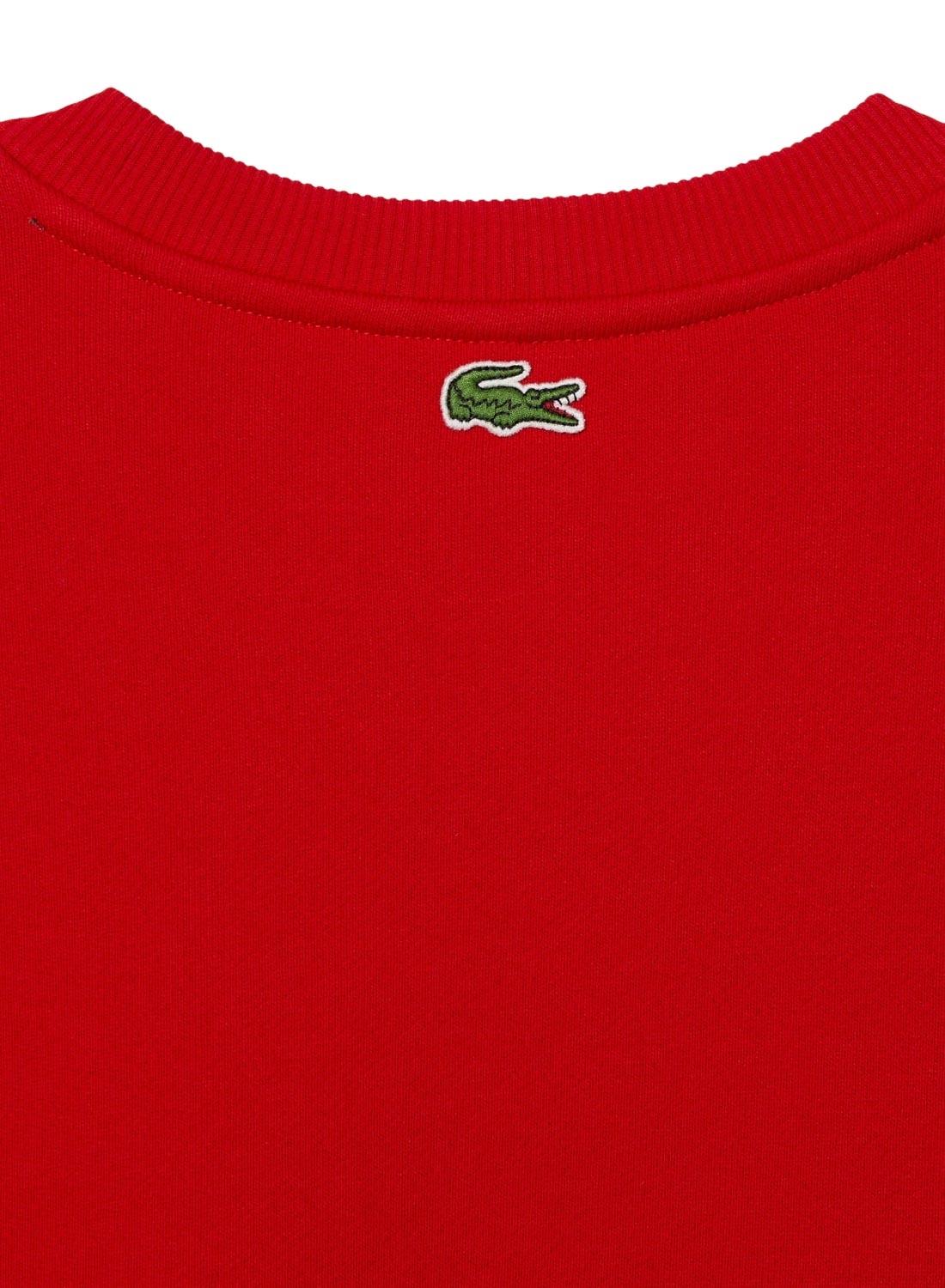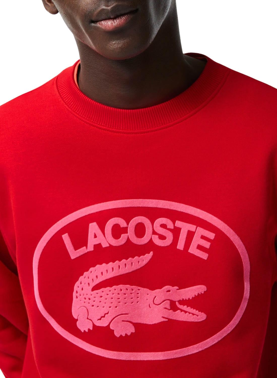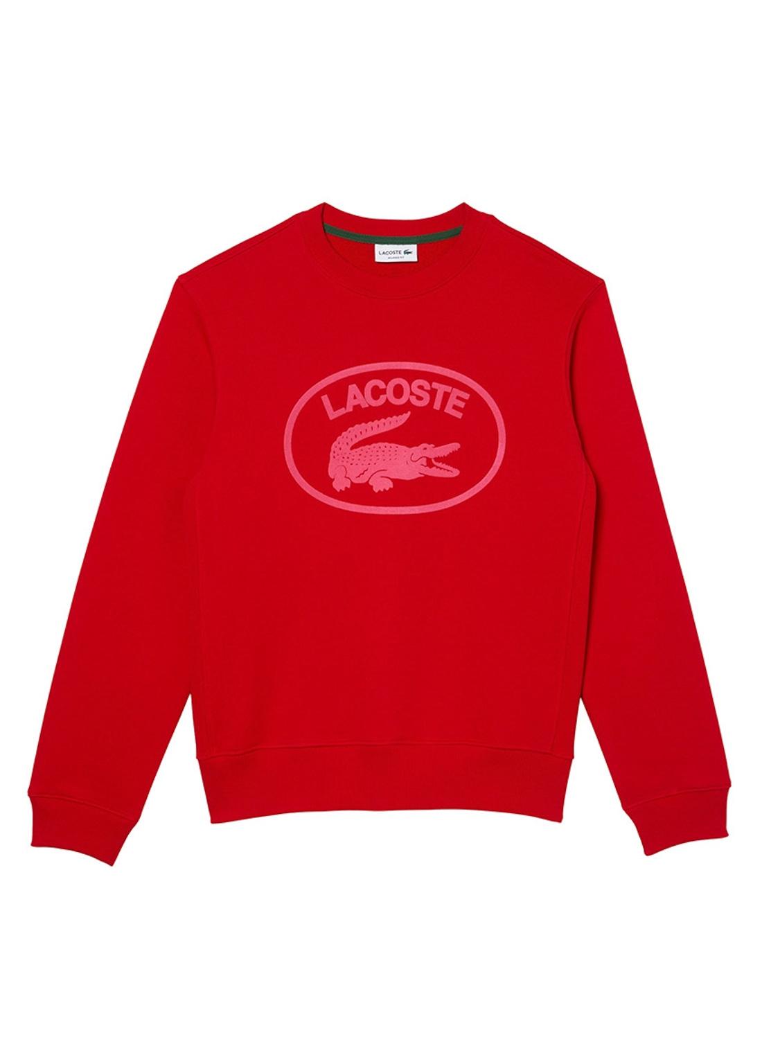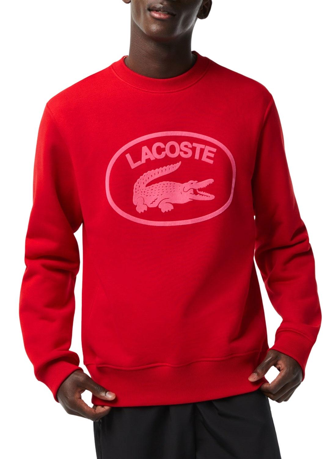 Sweat Lacoste. Modelo SH0254. Cor vermelho. Inscrição Lacoste. Bordado Crocodile. Corte solto. Pelúcia de algodão orgânico.