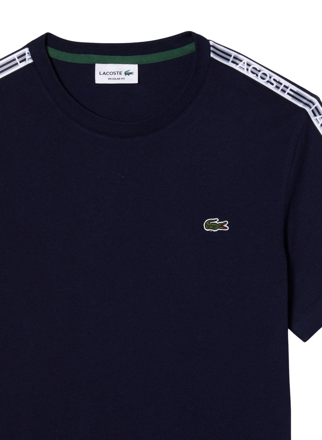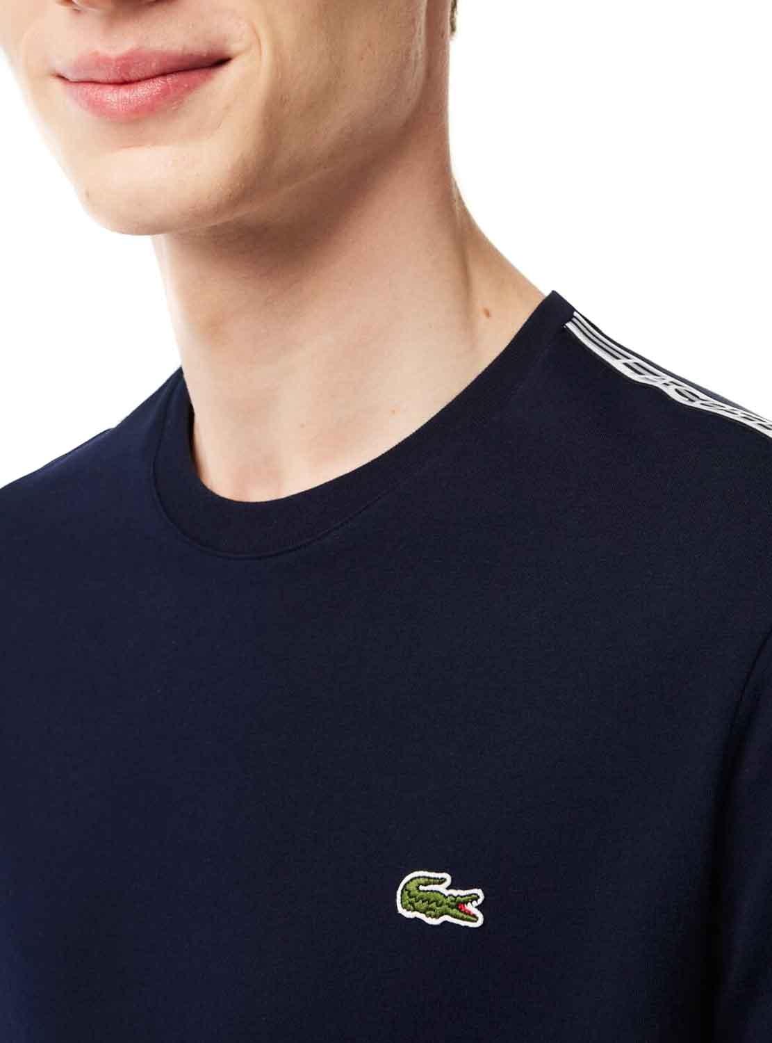 T-Shirt Lacoste. Modelo TH5071. Cor azul marinho. Com logo bordado no peito. T-Shirt manga curta básica. Faixas nas mangas. Regular fit. Tecido de malha grossa.
