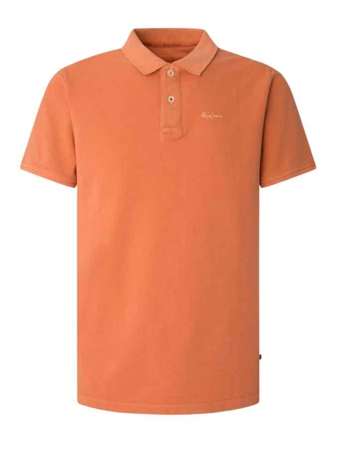 Polo Pepe Jeans. Modelo Oliver. Cor laranja. Gola pólo com dois botões. Manga curto. Logo da marca no peito. Regular fit.