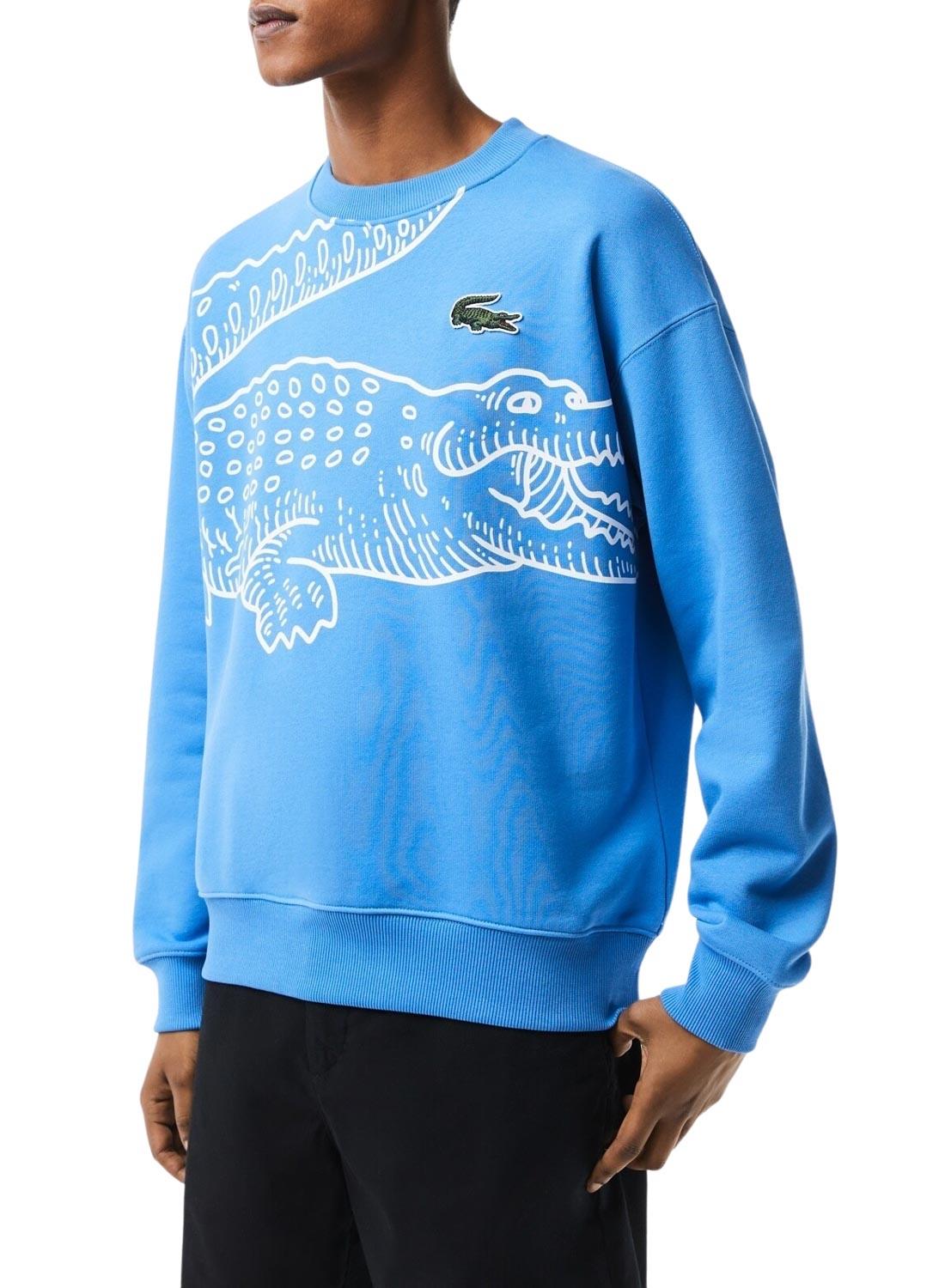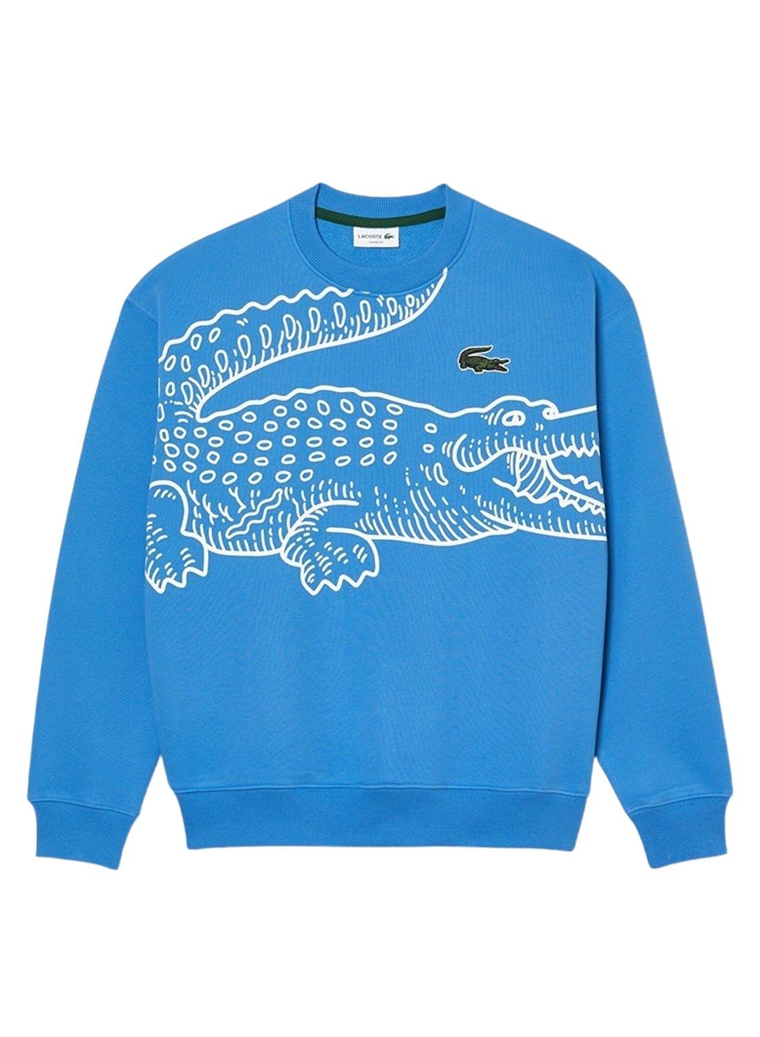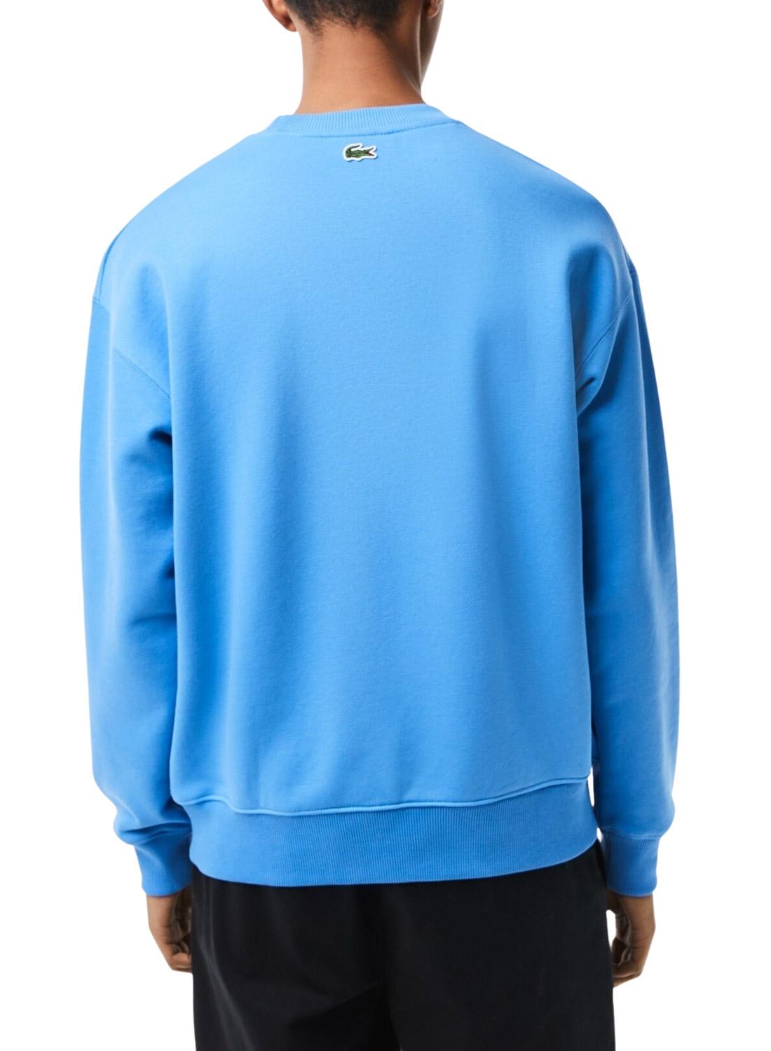 Sweat Lacoste. Modelo Vintage. Cor azul. Pescoço redondo. Logo impresso em tamanho grande. Corte oversized. Punhos, gola e bainha elásticos.