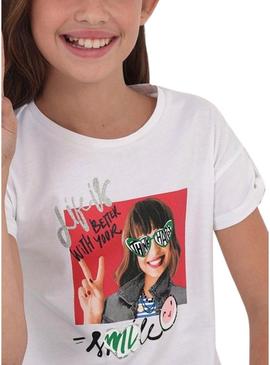 T-Shirt Mayoral Chica Smile Branco para Menina