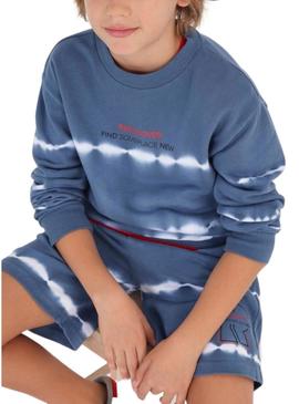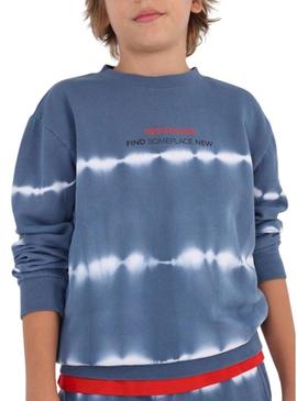 Sweat Mayoral. Modelo tie dye. Cor azul. Manga longo. Pescoço redondo. Design tie-dye. Detalhes impressos no parte frontal e no verso