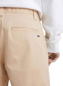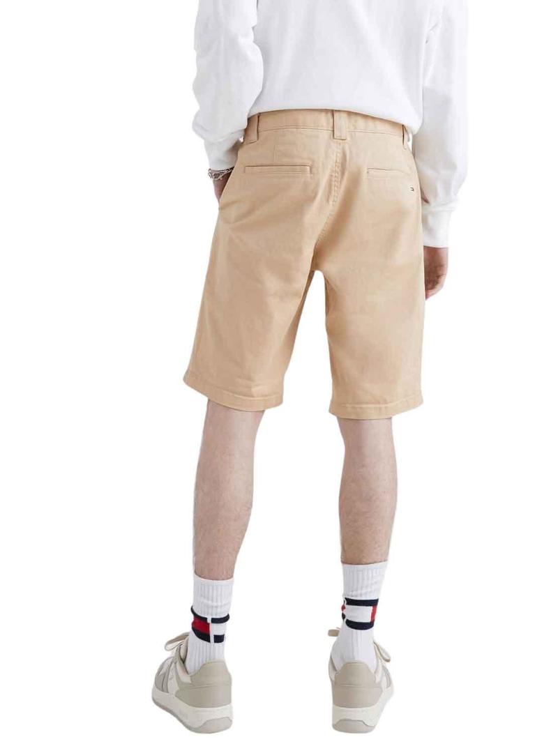 Bermuda Tommy Jeans. Modelo Scanton. Cor bege. Fechamento por botão e zíper. para presilhas de cinto. Corte de encaixe slim. Tecido sarja de algodão.