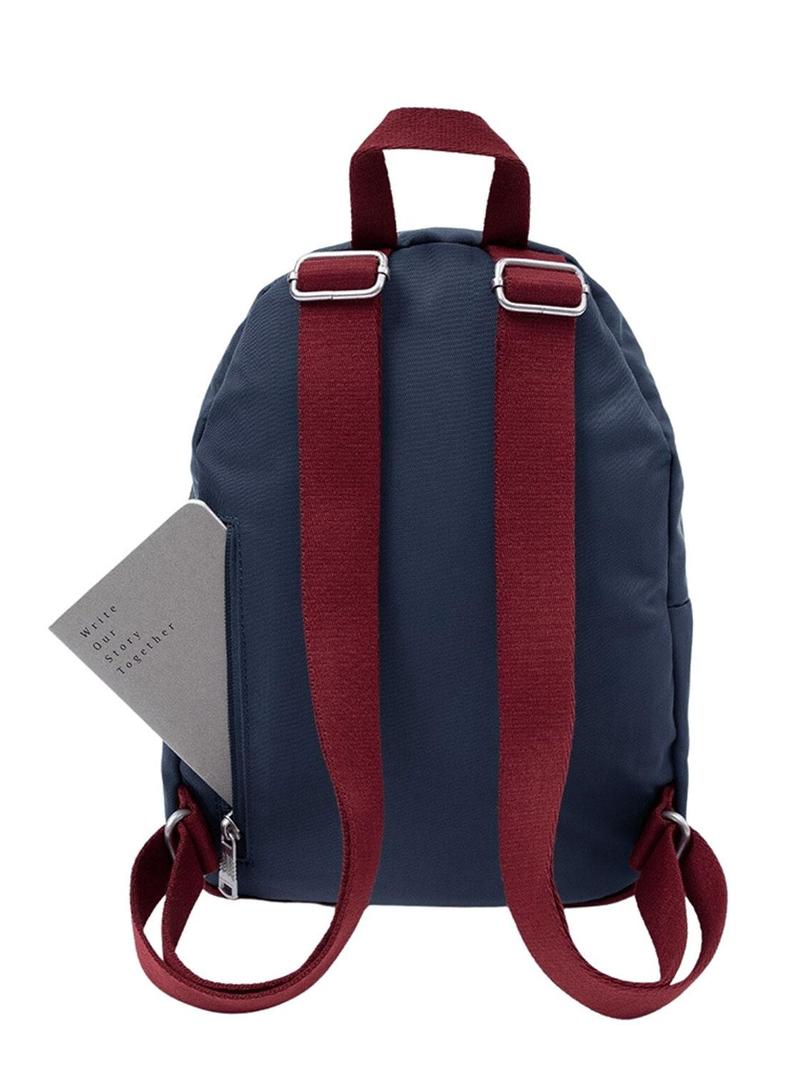 Mochila Doughnut. Modelo Plusone Mini. Cor azul. Alças acolchoadas ajustáveis. Fecho de correr. compartimentos internos. Bolso frontal com zíper. Tecido repelente de água. Dimensões: 24cm x 12cm x 31cm
