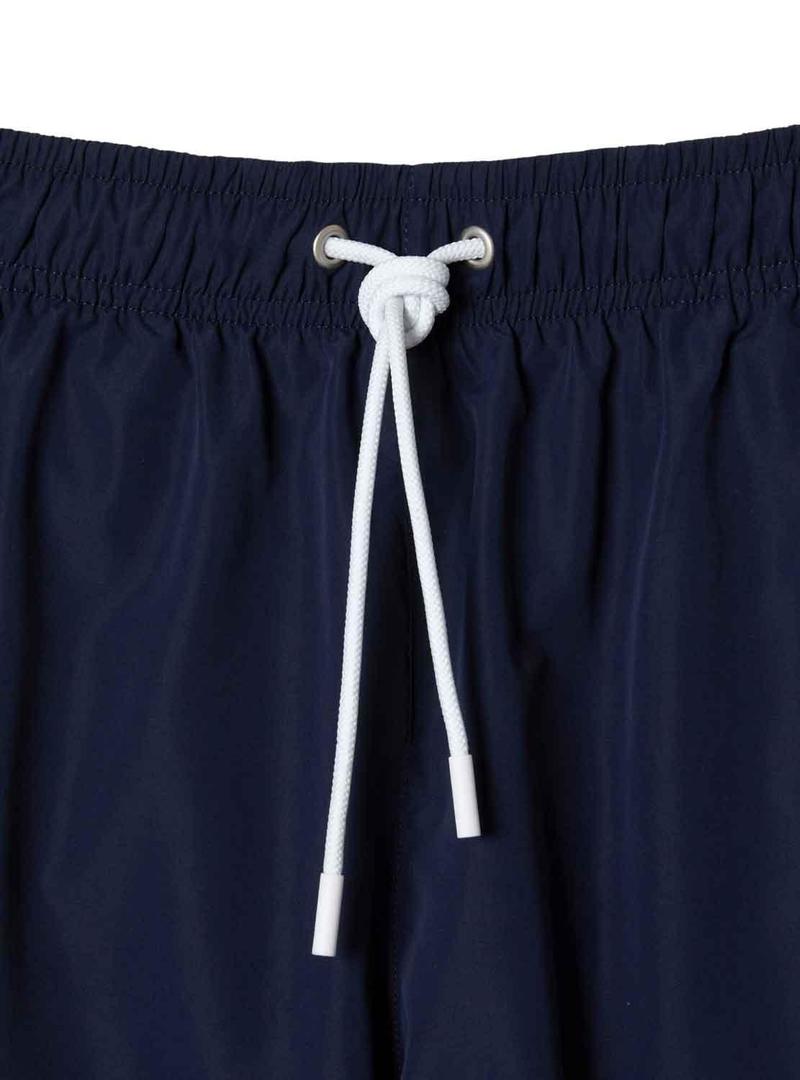 Swimsuit Lacoste. Modelo MH5633. Cor marinho. Printed Lacoste na parte inferior. Cintura elástica com cordões. 3 bolsos. Secagem rápida.
